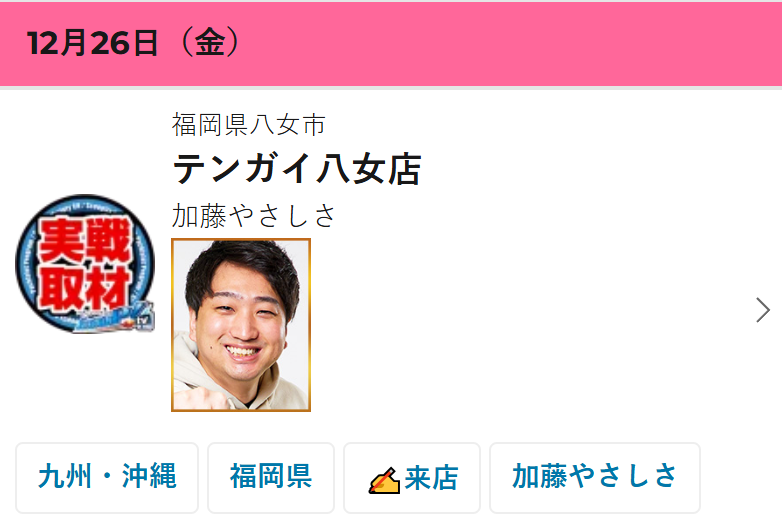 12月28日 フェイス4店舗(1500宗像・1030伊都・777遠賀・1300小倉南)