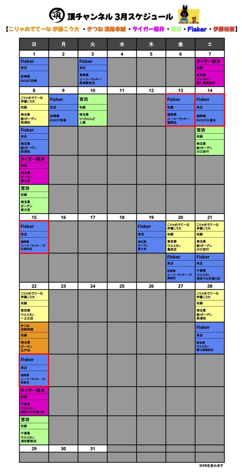 3月の誕生日キャラクター・記念日