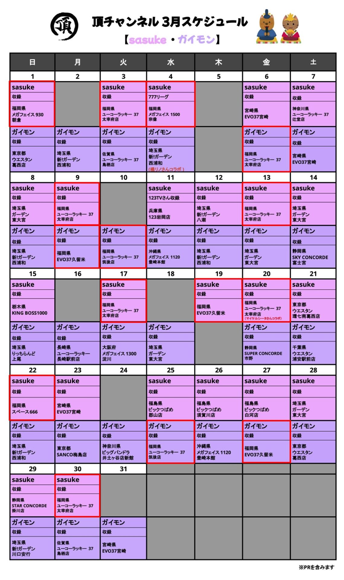 3月の誕生日キャラクター・記念日
