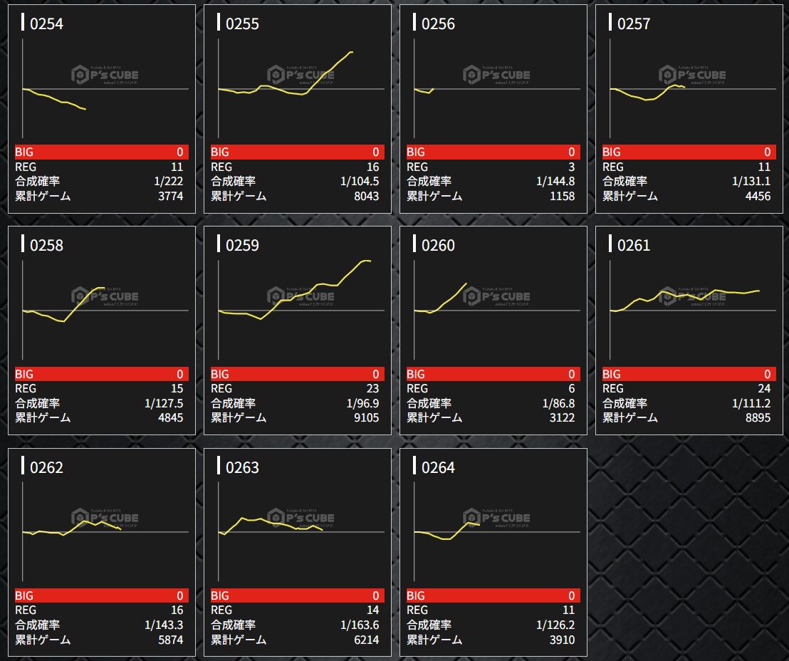 末尾【9】👉1台平均+2243枚 勝率18/28台(64.3%) ジャグ推定4以上2/8台(25%)。あとはモンキーⅤが1/3位悪くなさそう。ライズの249番・東京喰種の259番が万枚over🎉ジャグラーは77台中9台(11.7%)が推定4以上。