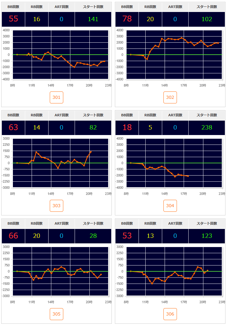 | スマスロ北斗の拳 | 302 | 6,254 | 1,914 |