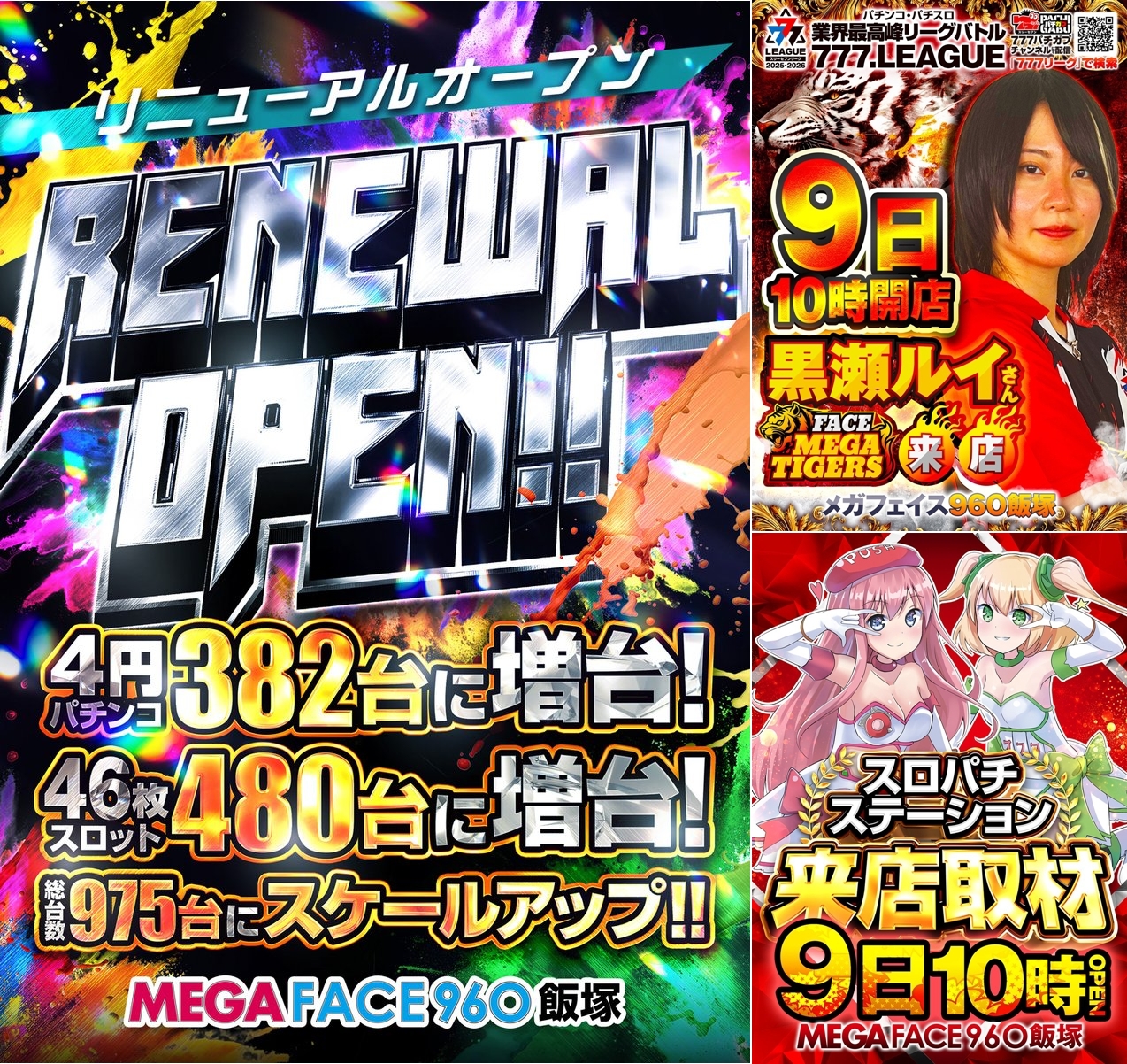 リニューアル🆕&9がつく日×スロパチ取材(赤)×黒瀬ルイ来店。抽選は710人位だった模様。