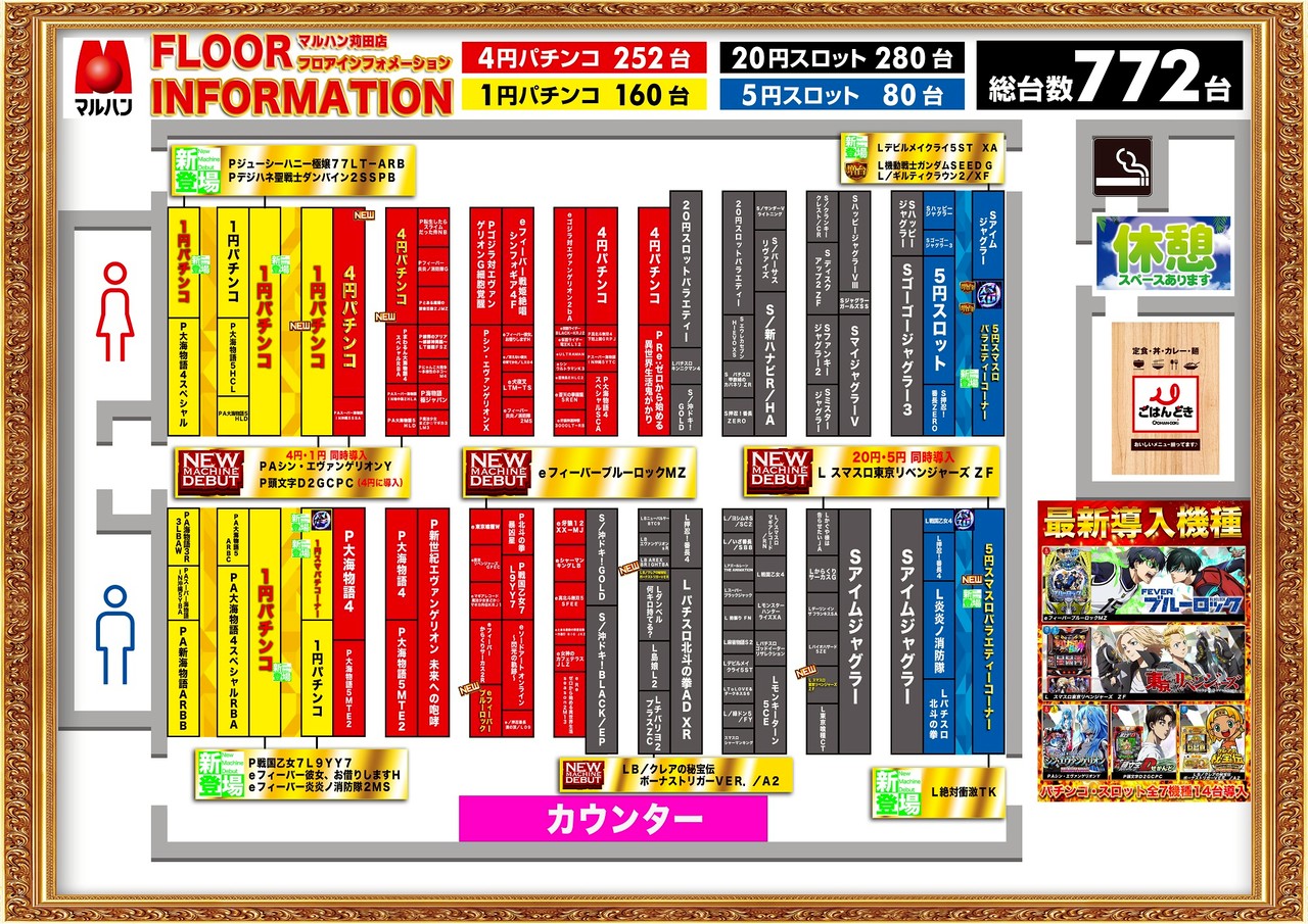 毎月1日の九州マルハンナンバーワン(今月は色が赤から青に変更)。今回は16店舗合同で東京喰種の扱いが良さそうでした👏