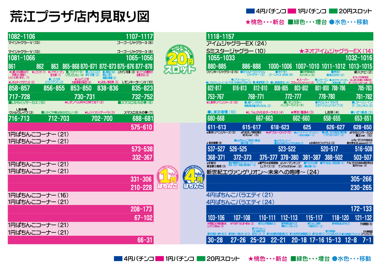 モンキーⅤは825~830番間が1台飛びで良さそう。L北斗は各列に単品ありそう。LBクレア・新ハナビ・東京喰種は角台〇。ほか機種1っぽい所など。ジャグラーは98台中28台(28.6%)が推定4以上。各機種1台は推定5以上あり。マイⅤの1067~1068番は5以上の連番👏