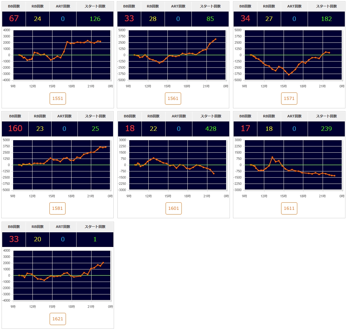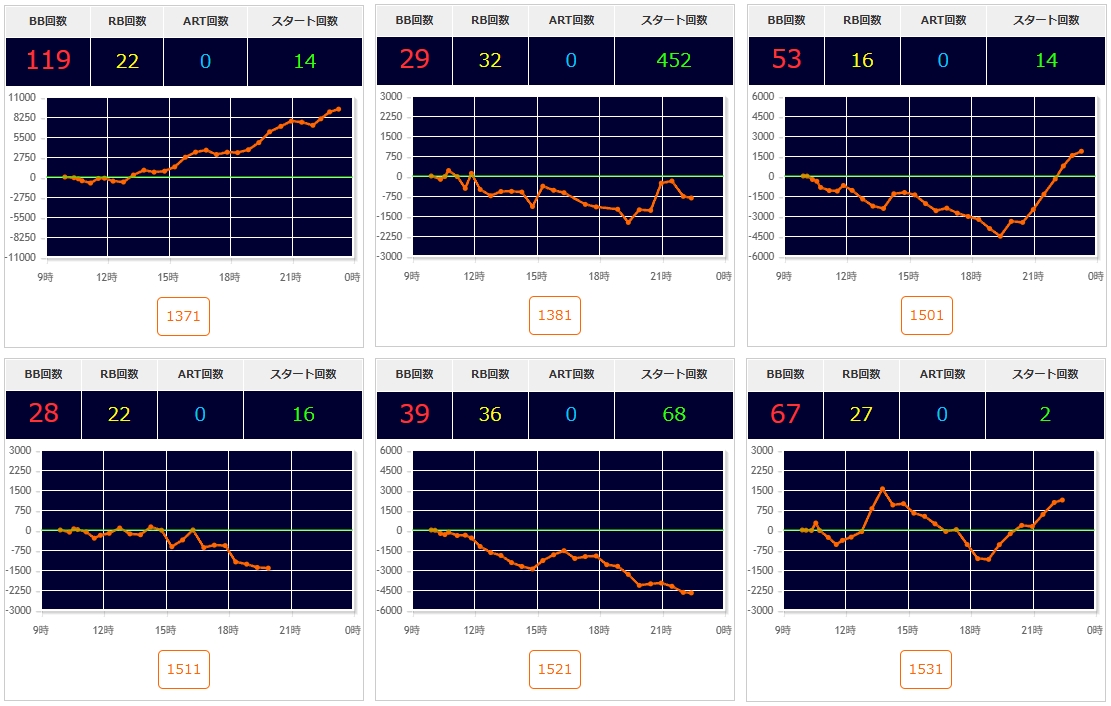 ジャグラーガールズ | 1711 | 8,439 | -1,597 |