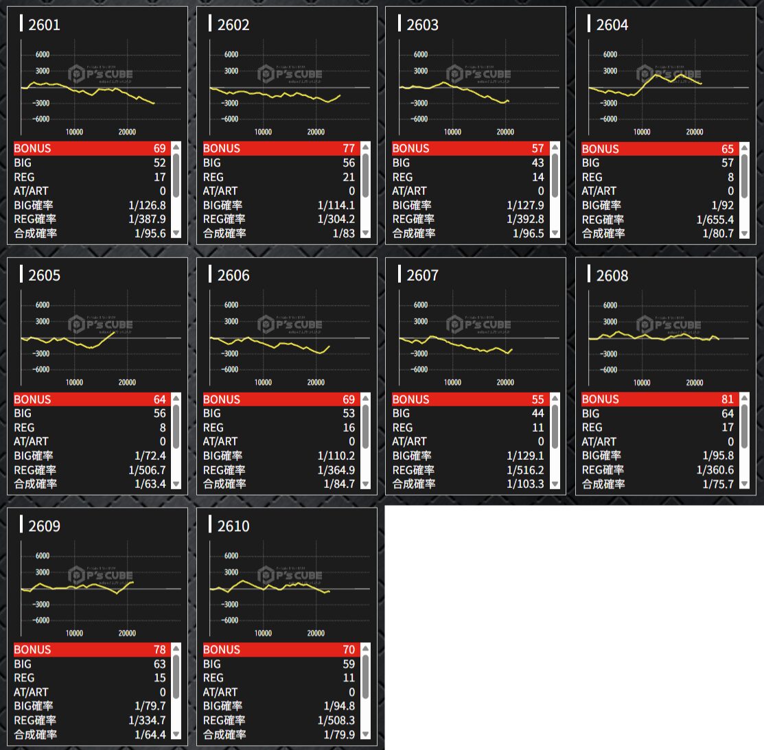 スマスロ北斗の拳 | 2602 | 6,388 | -1,400 |