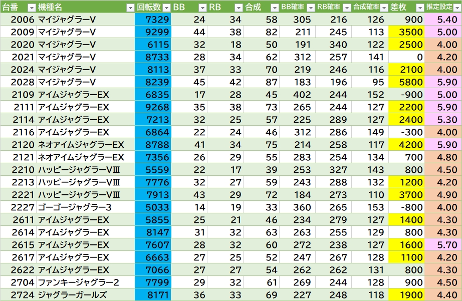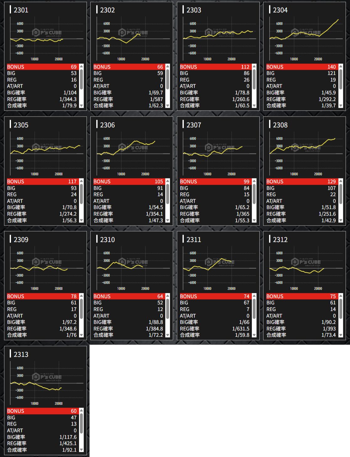 スマスロ北斗の拳 | 2306 | 4,957 | 5,100 |
