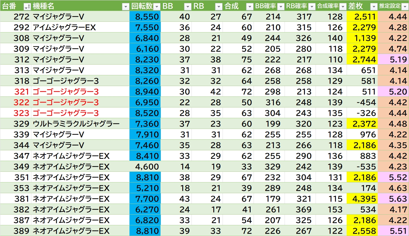 ジャグラーガールズ | 286 | 4,870 | -966 |