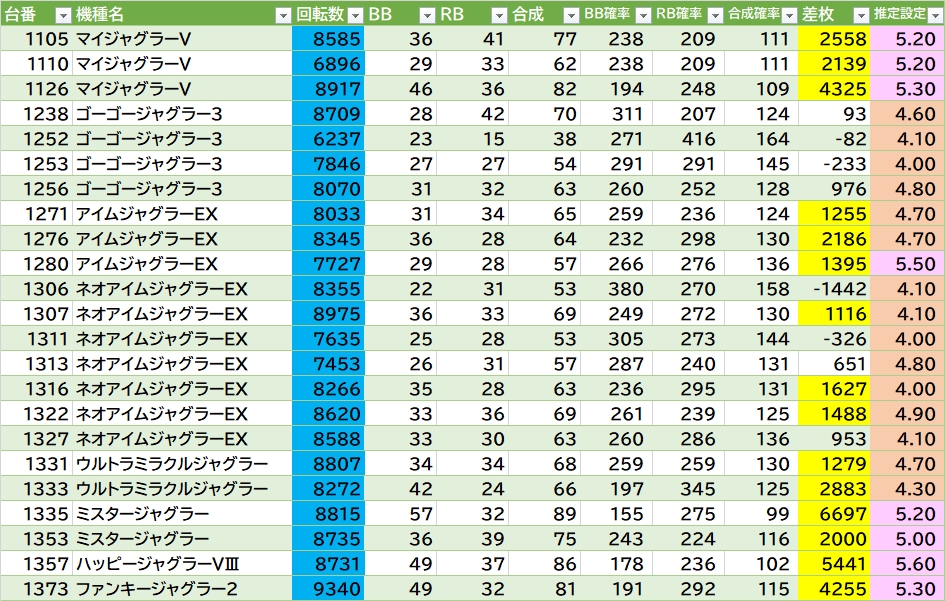 スマスロ北斗の拳 | 761 | 5,618 | 3,953 |
