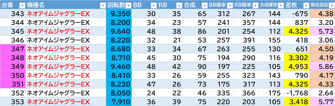 平均差枚:345枚