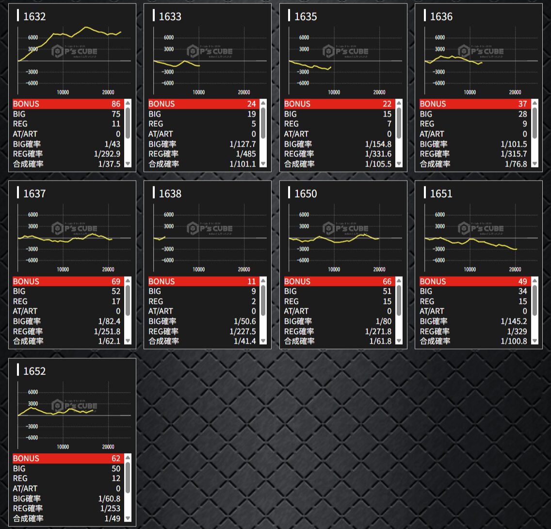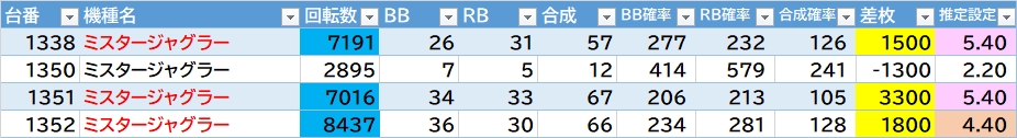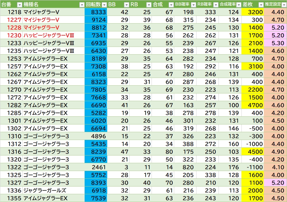 機種名 台番 G数 差枚