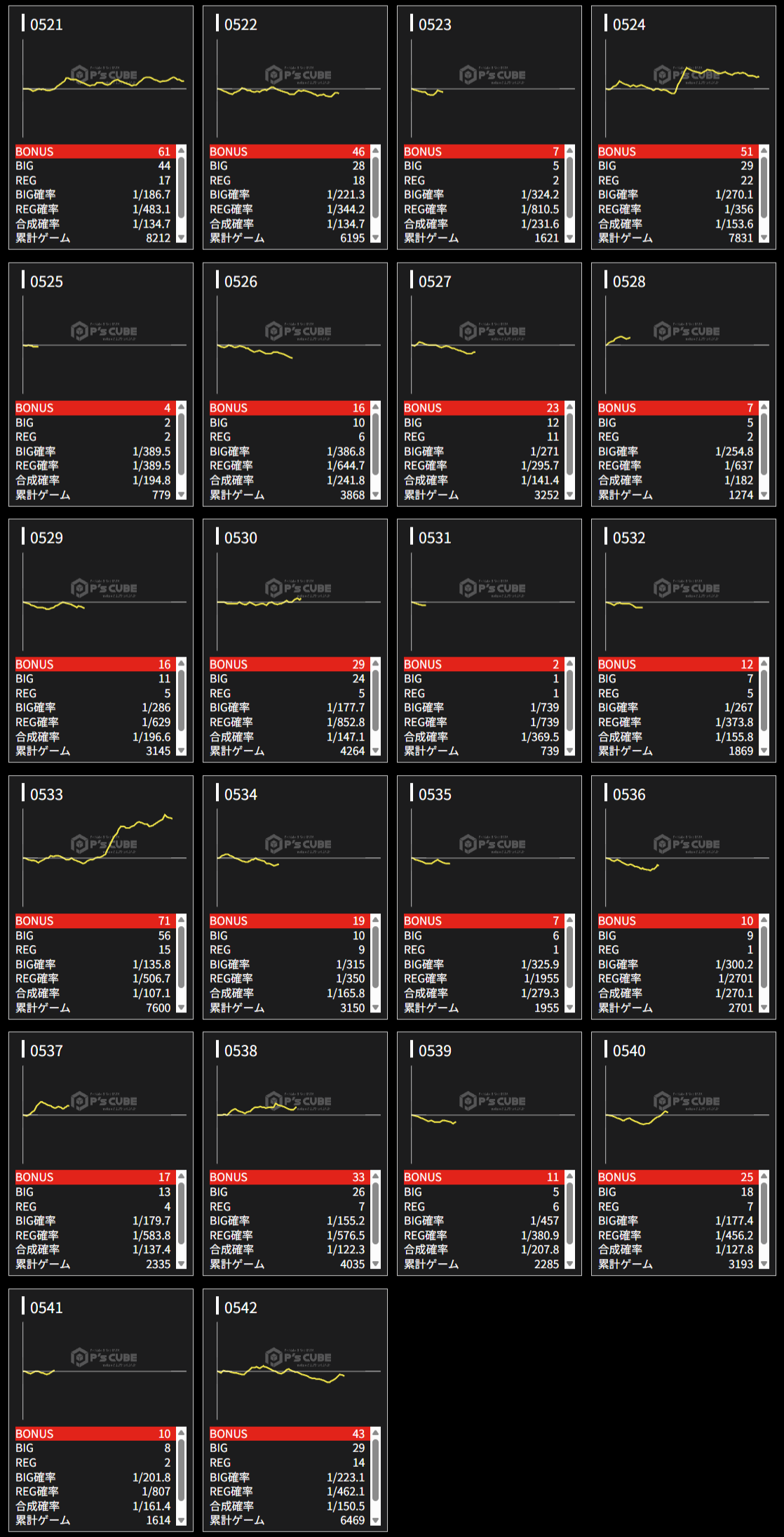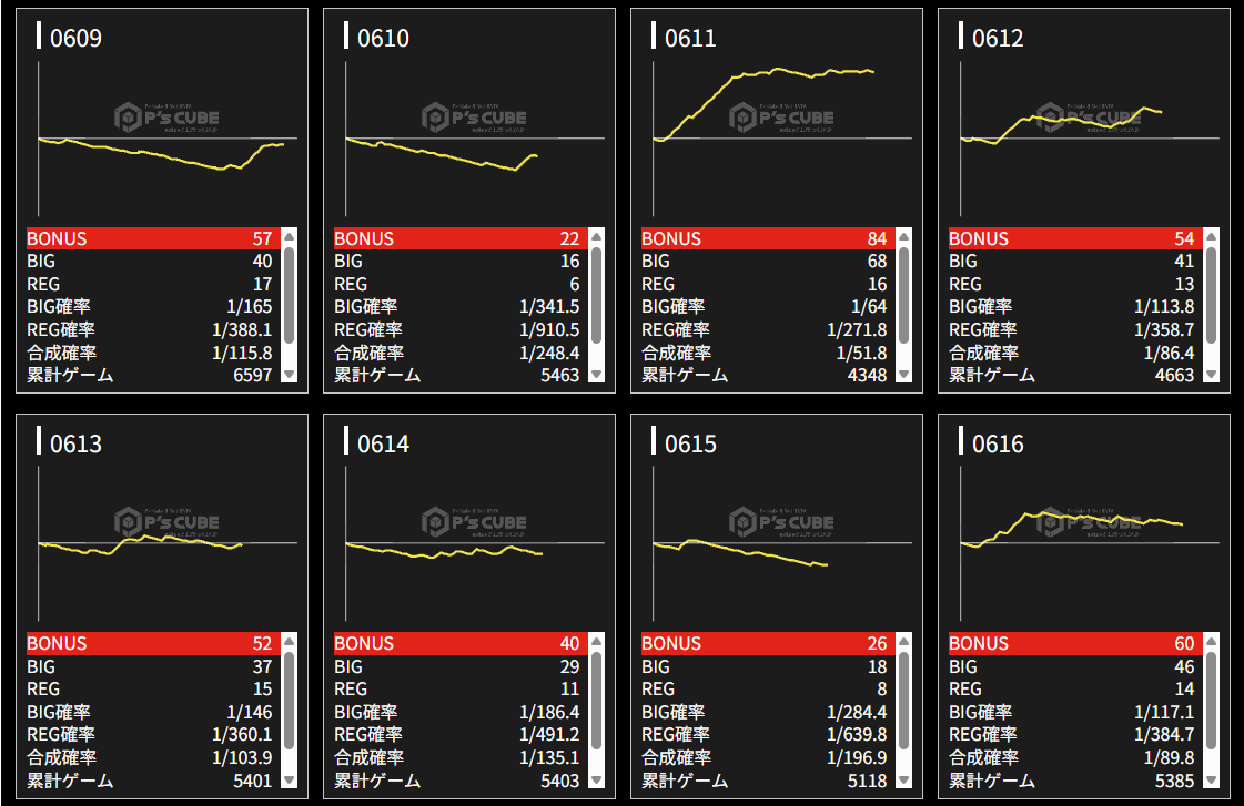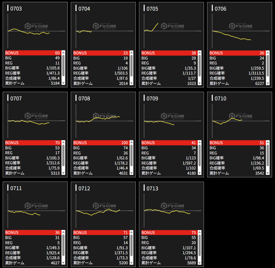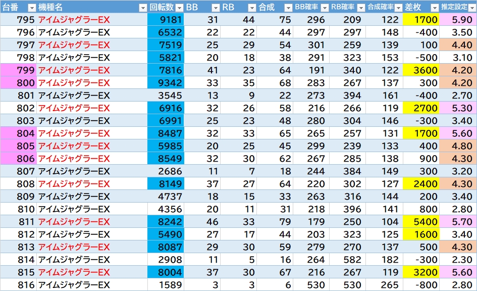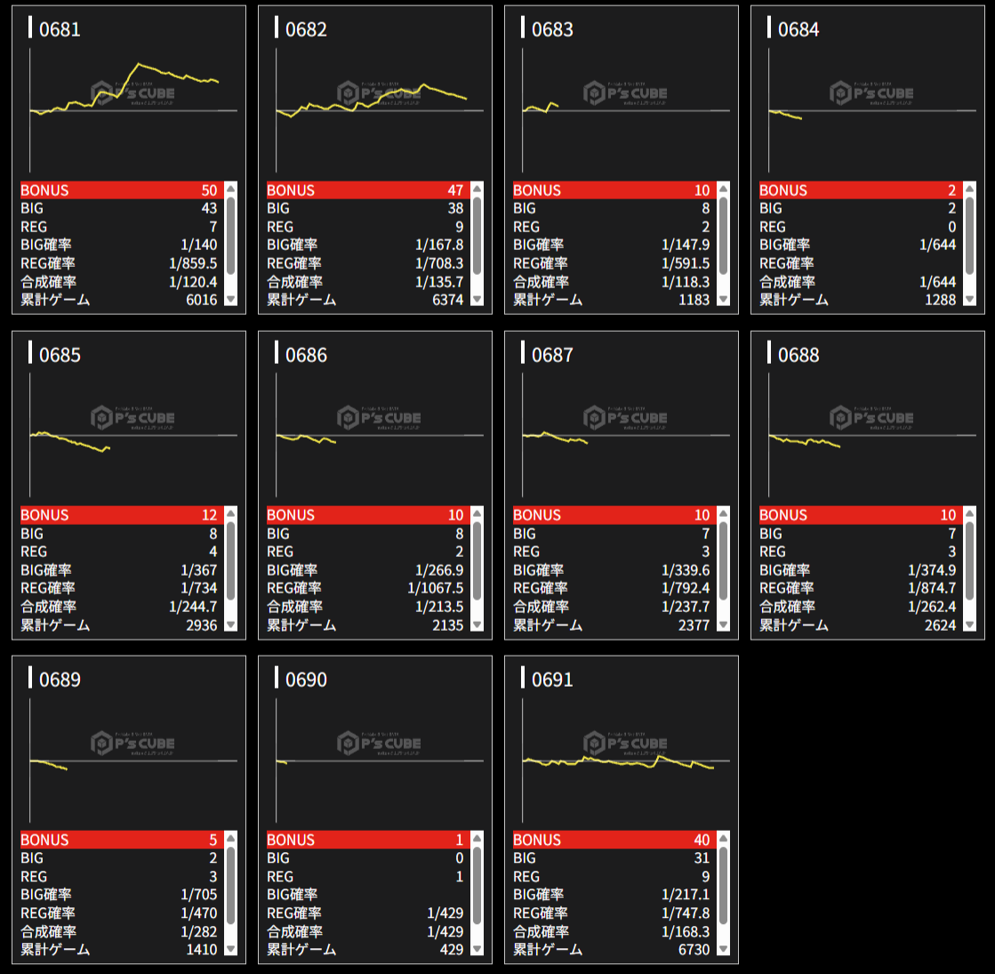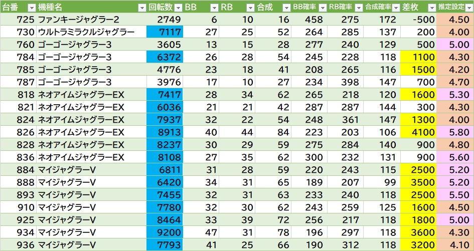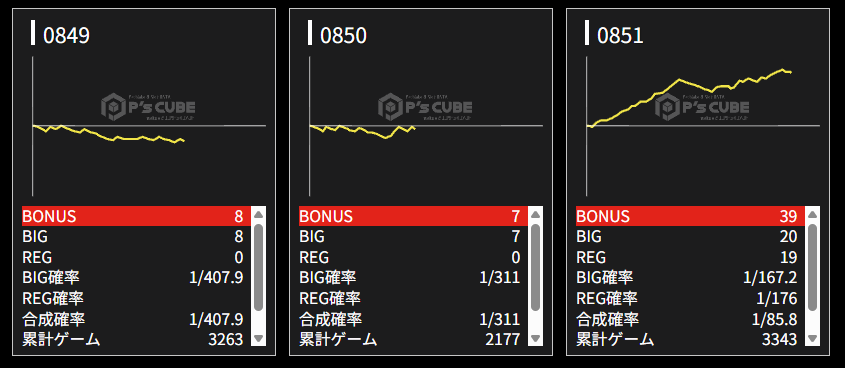 機種名 台番 G数 差枚