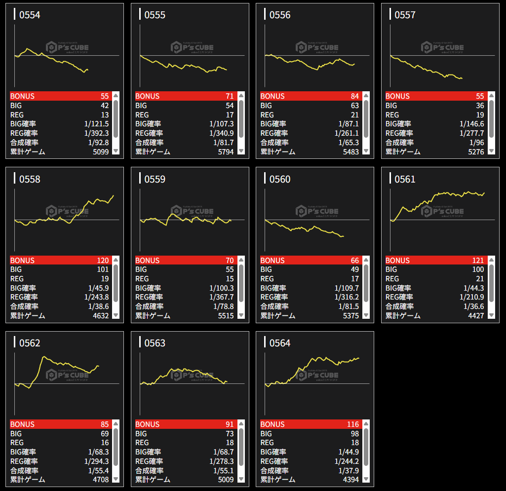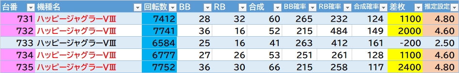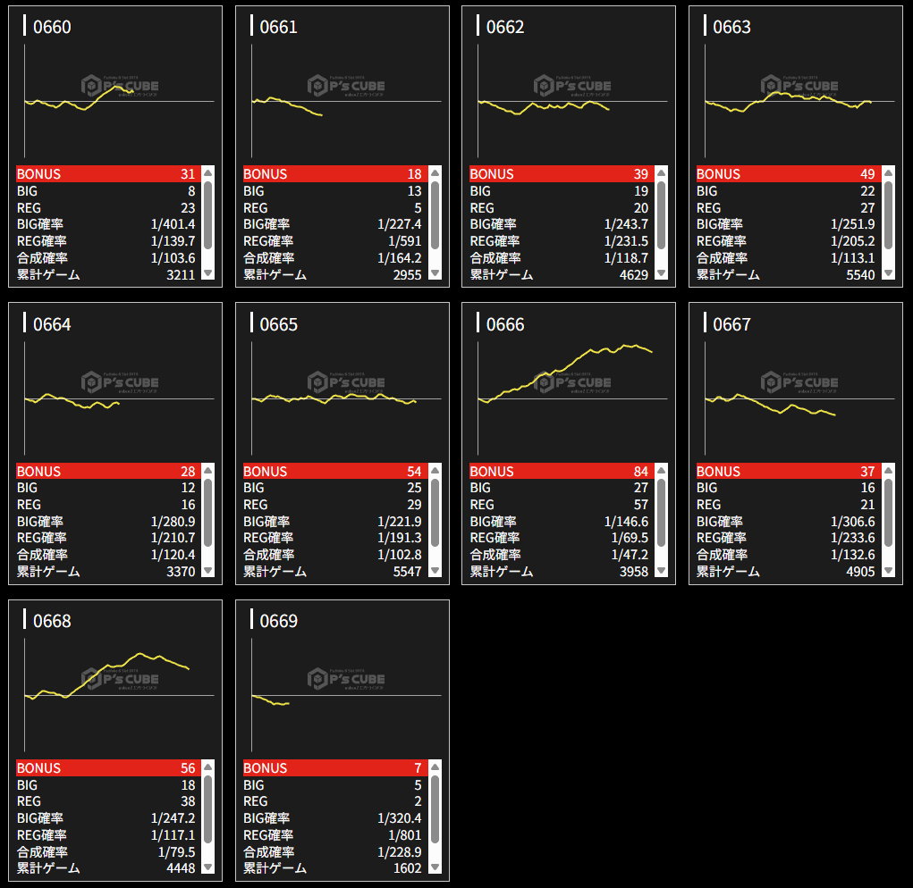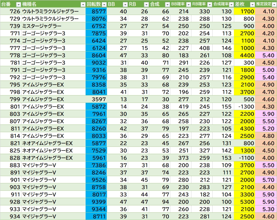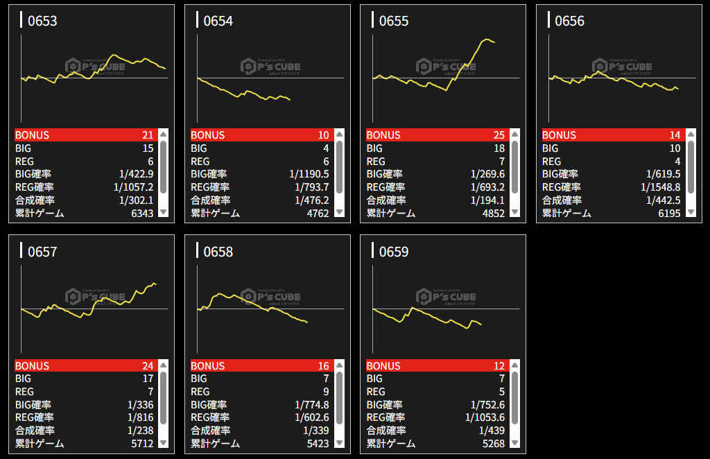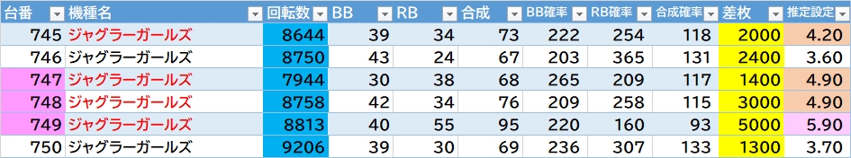 | 機種名 | 台番 | G数 | 差枚 |