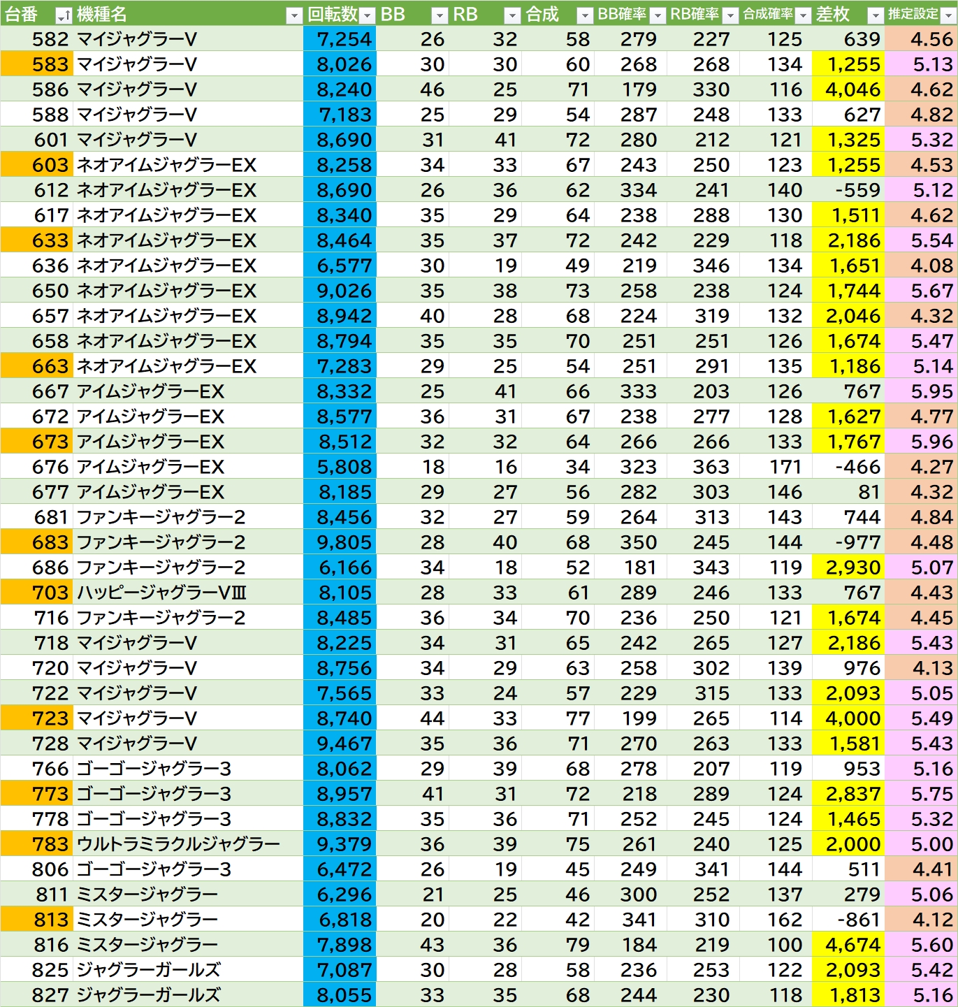 | スマスロ北斗の拳 | 1033 | 6,586 | 1,767 |