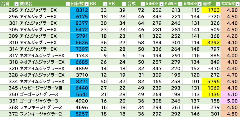 アイムジャグラーEX 295 8,312 1,703