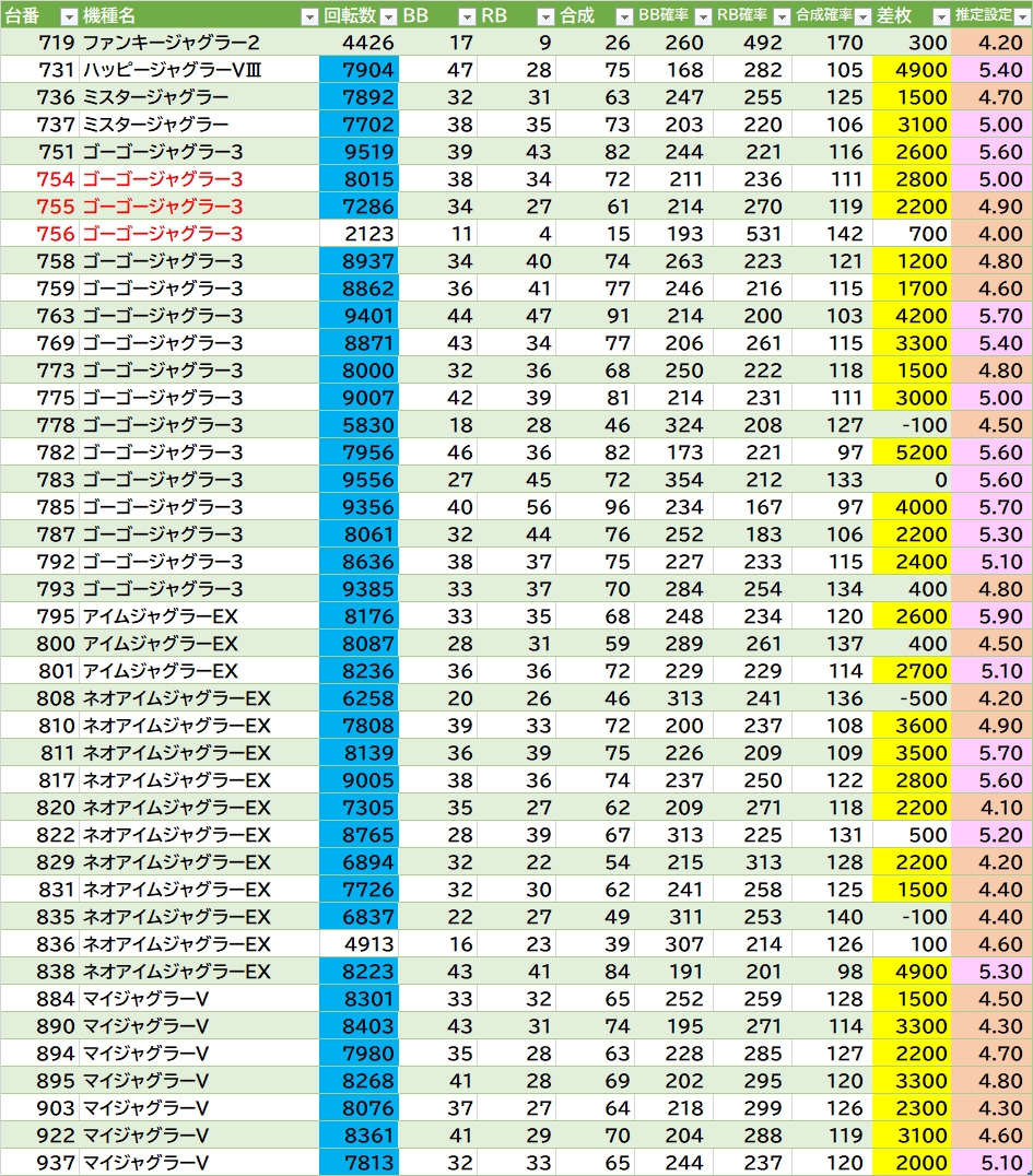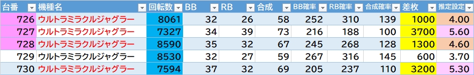 | スマスロ北斗の拳 | 545 | 5,635 | -1,000 |