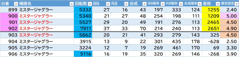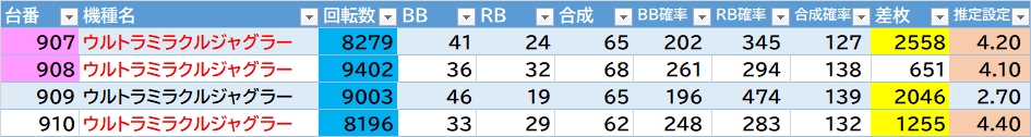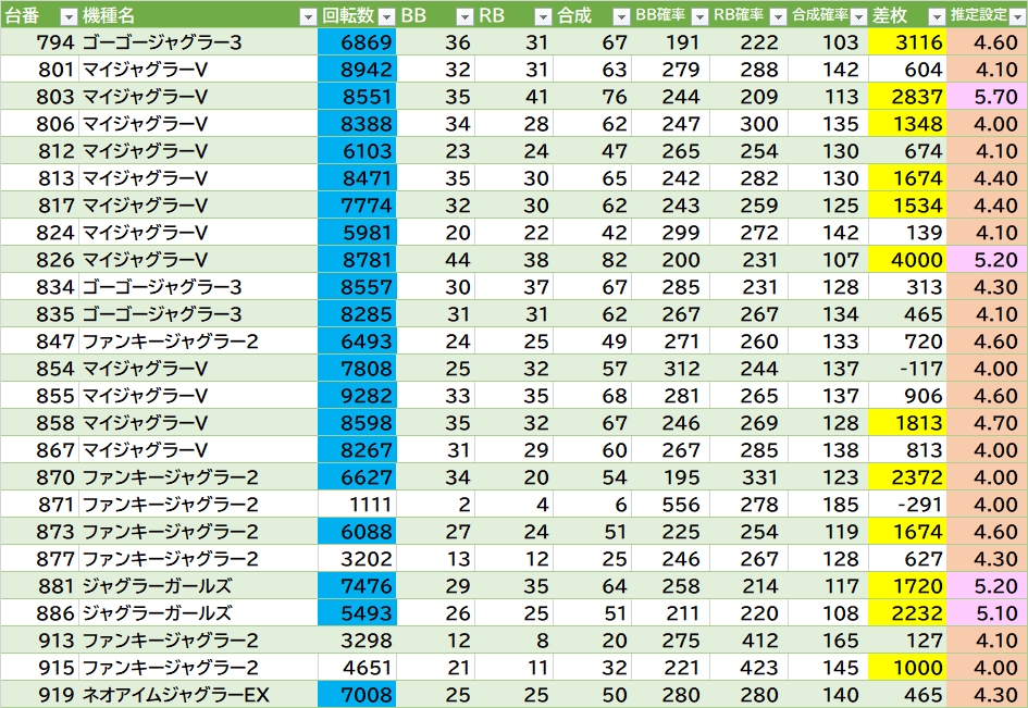 | スマスロ北斗の拳 | 556 | 4,273 | -500 |