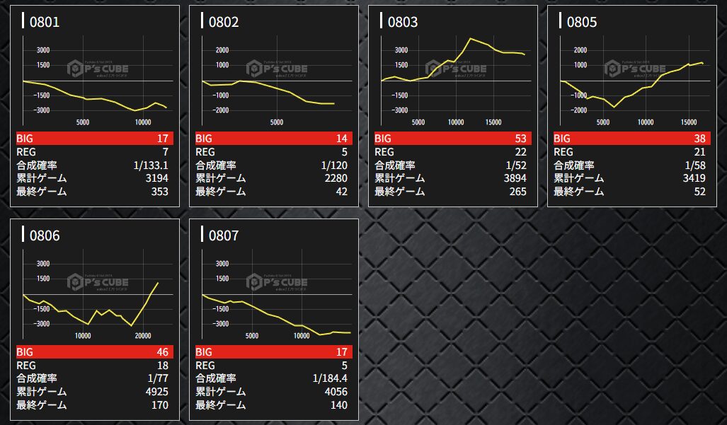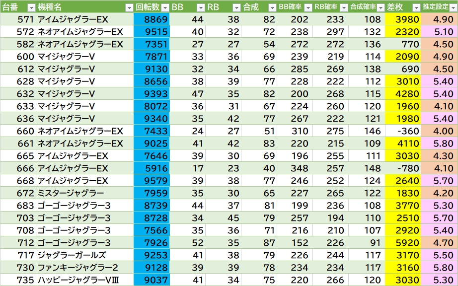 | マイジャグラーV | 618 | 8,371 | 3,280 |