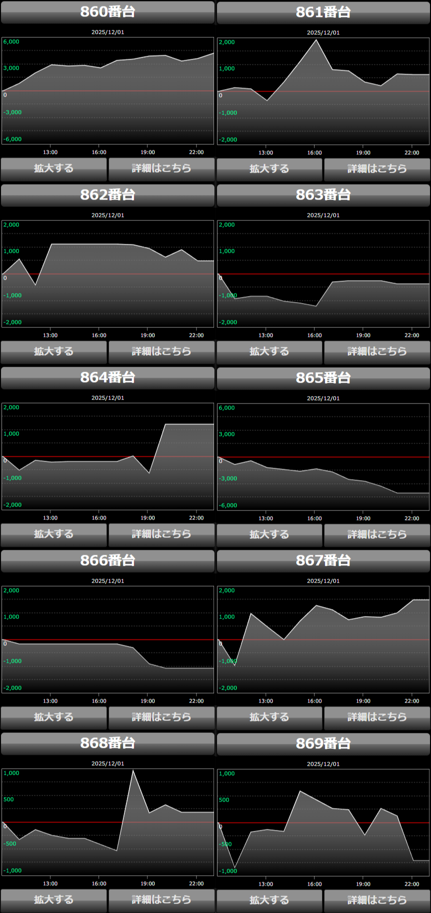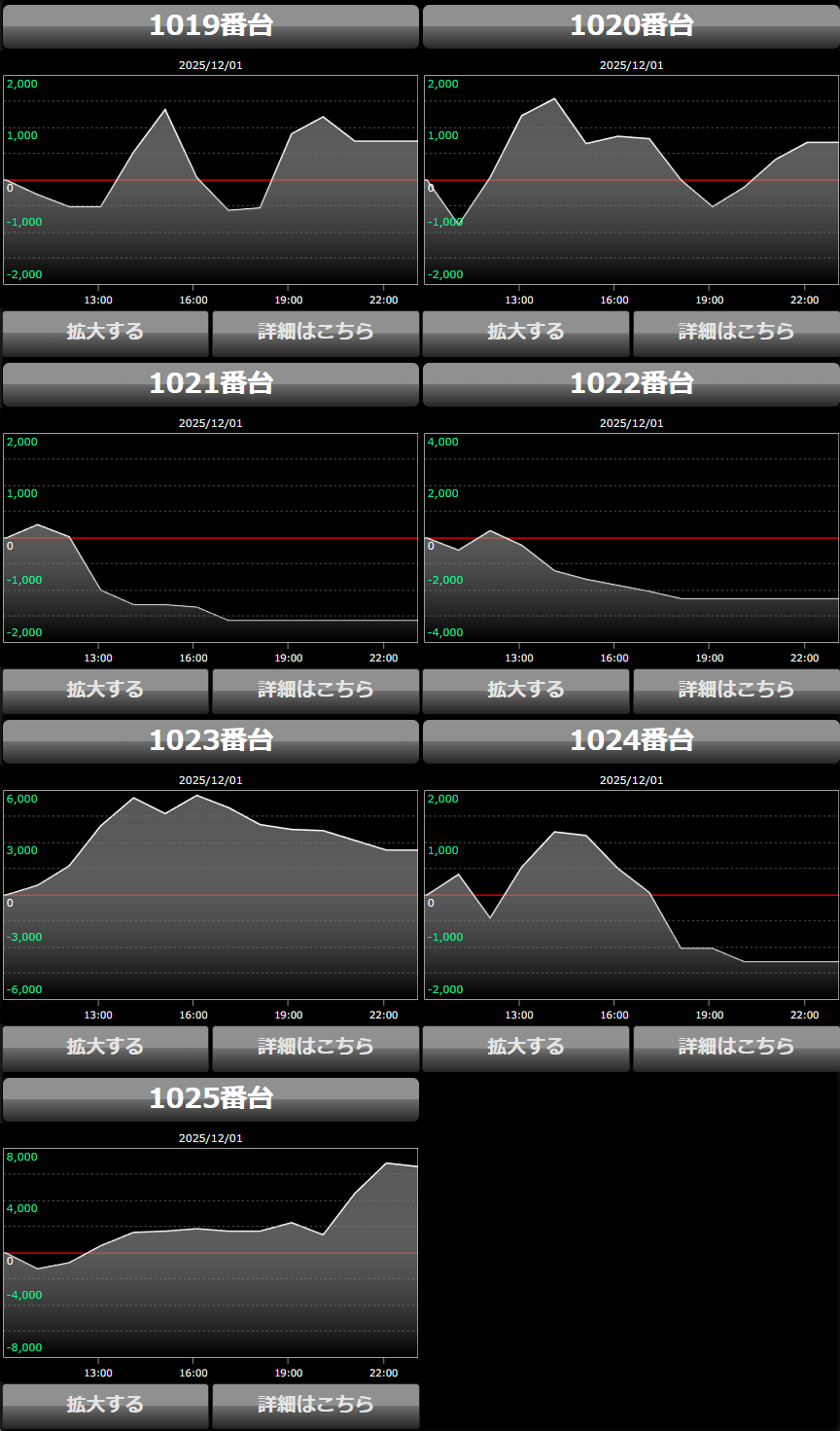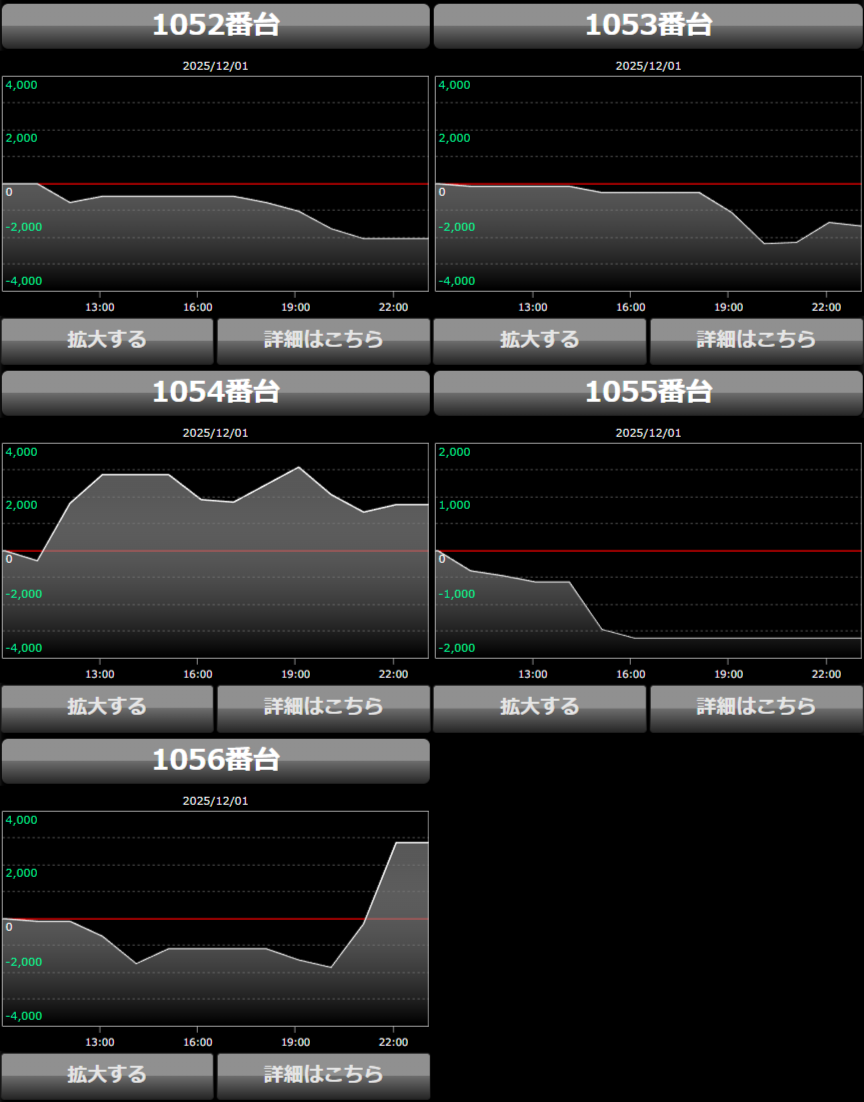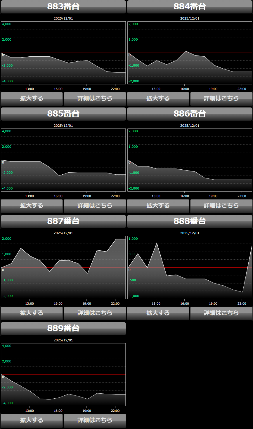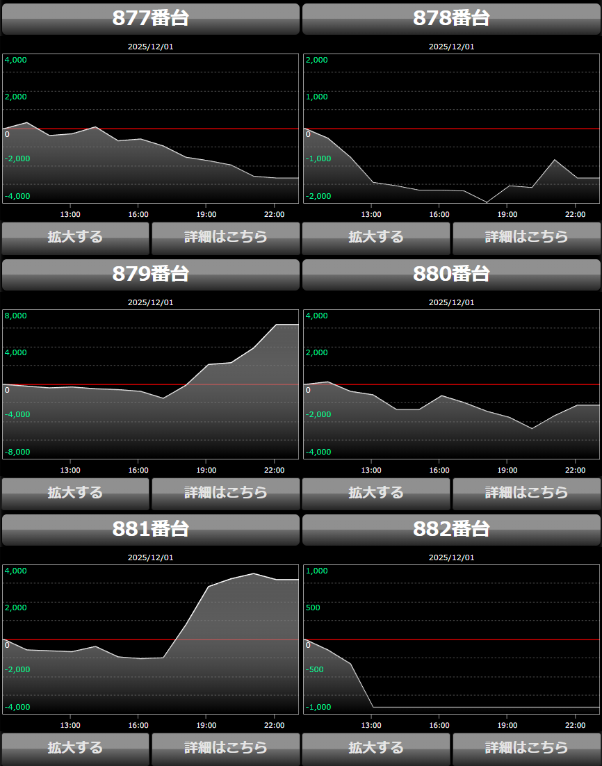ヴヴヴ2が全体的にG数高め(平均6897G 勝率12/20台)。東リベは1/3位気になる(万枚over2台🎉)。東京喰種は1090~1092番の連番〇。マギレコ・GEは角付近が悪くなさそう。いざ番長は989~990番の連番で万枚overあり🎉ほかドラハナ・モンキーⅤ・L北斗など。L炎炎・かぐや様・チバリヨ2にも万枚over1台あり🎉ジャグラーは126台中23台(18.3%)が推定4以上。マイⅤの269~271番〇。