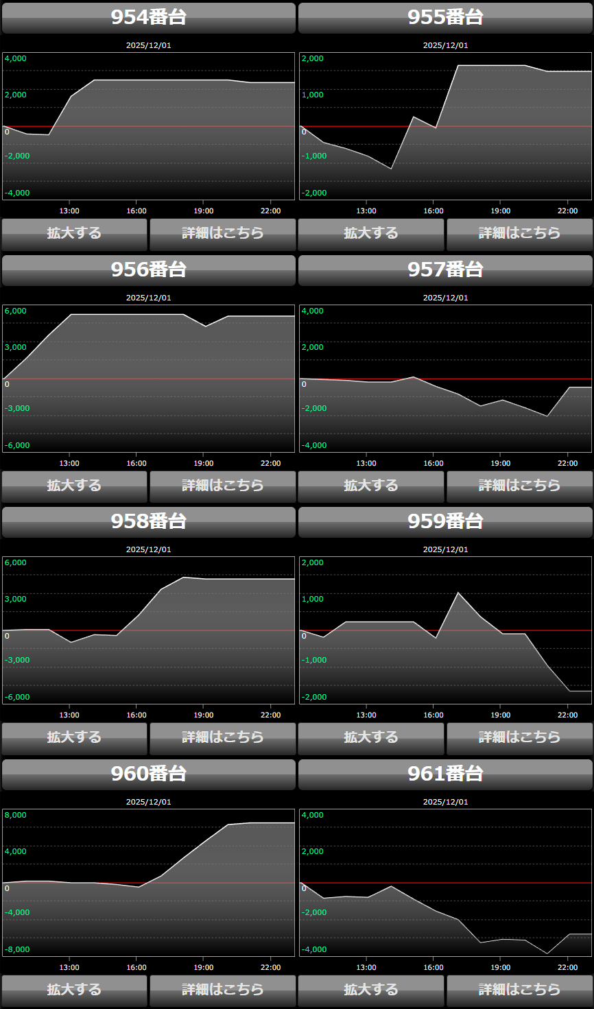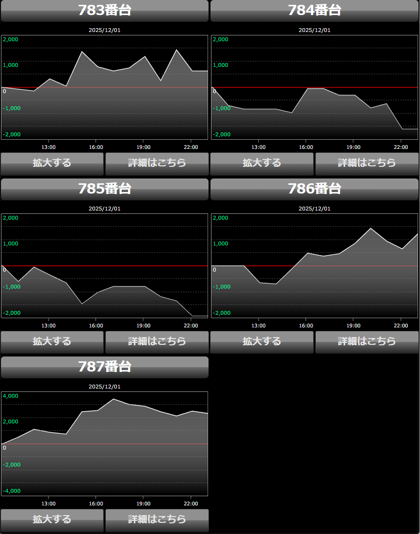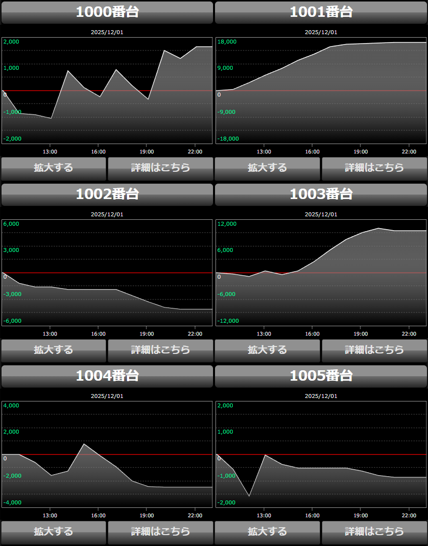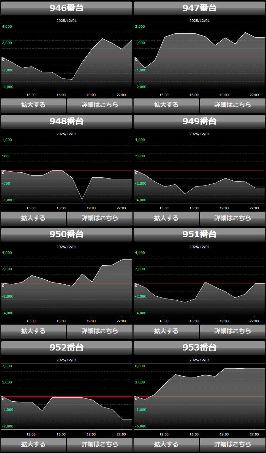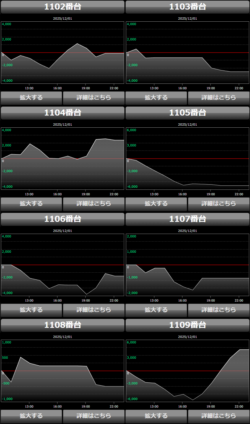 ヴヴヴ2が全体的にG数高め(平均6897G 勝率12/20台)。東リベは1/3位気になる(万枚over2台🎉)。東京喰種は1090~1092番の連番〇。マギレコ・GEは角付近が悪くなさそう。いざ番長は989~990番の連番で万枚overあり🎉ほかドラハナ・モンキーⅤ・L北斗など。L炎炎・かぐや様・チバリヨ2にも万枚over1台あり🎉ジャグラーは126台中23台(18.3%)が推定4以上。マイⅤの269~271番〇。