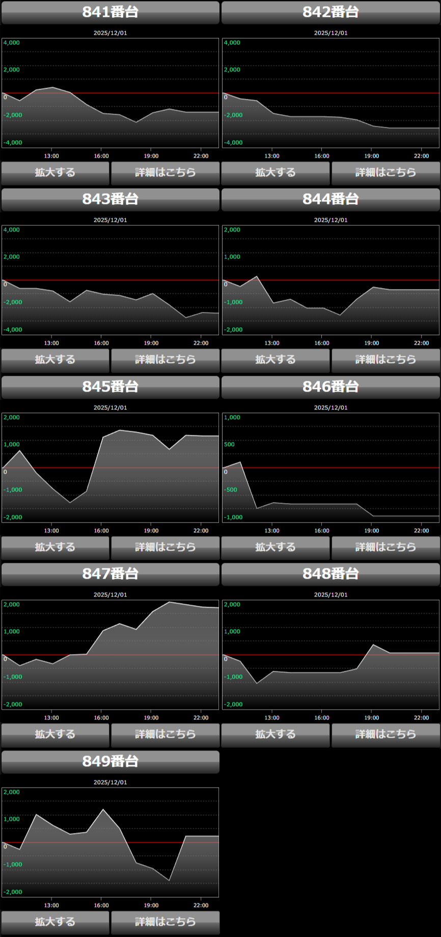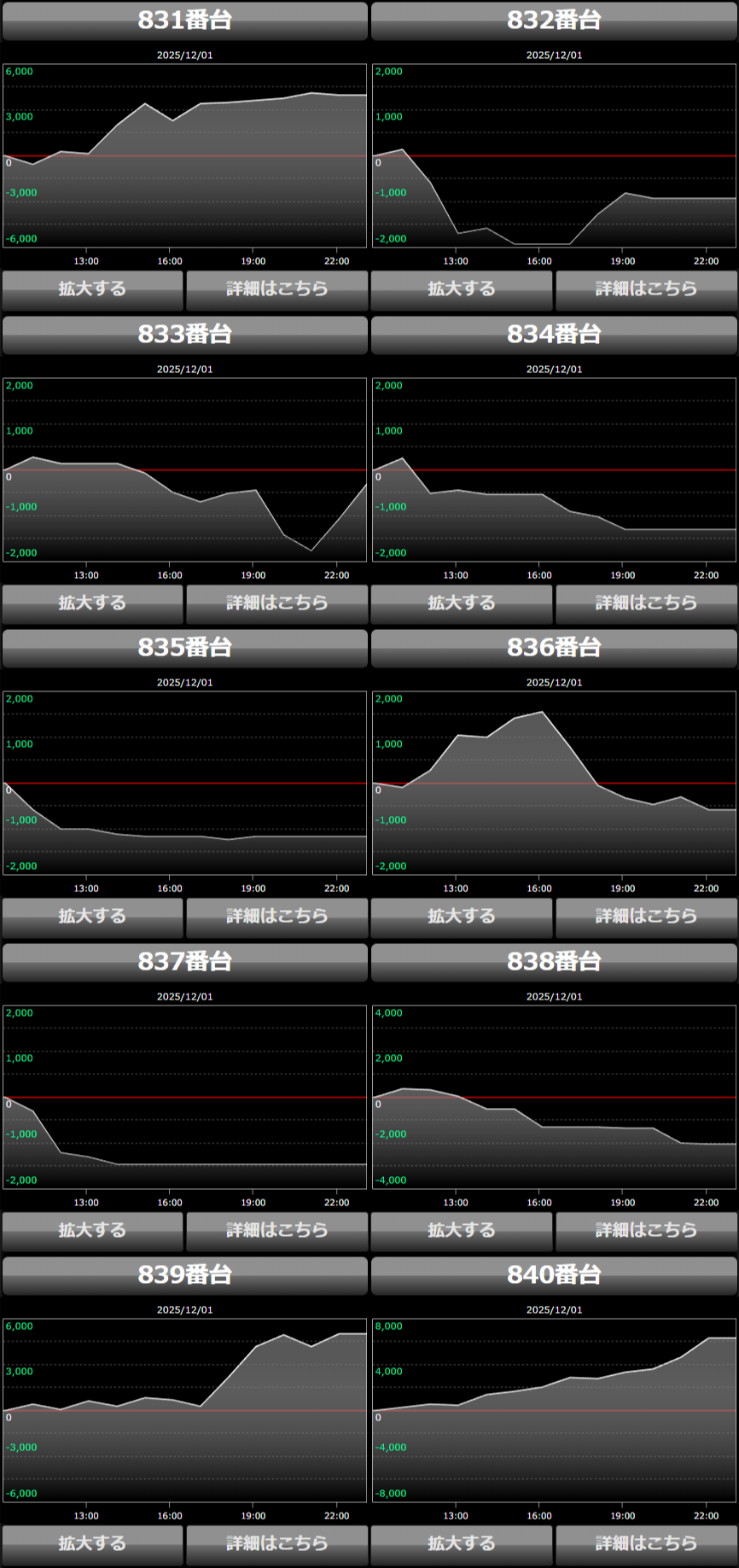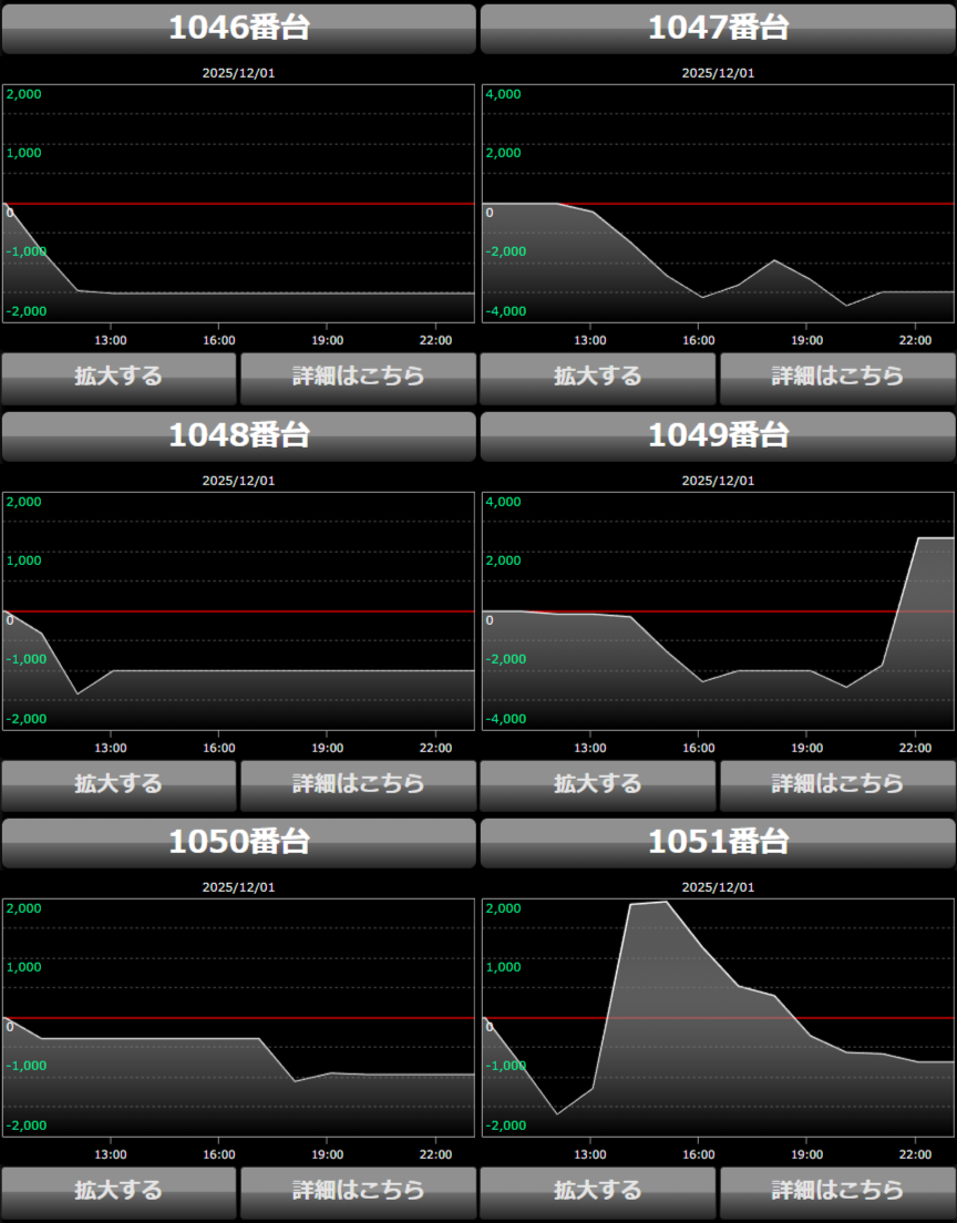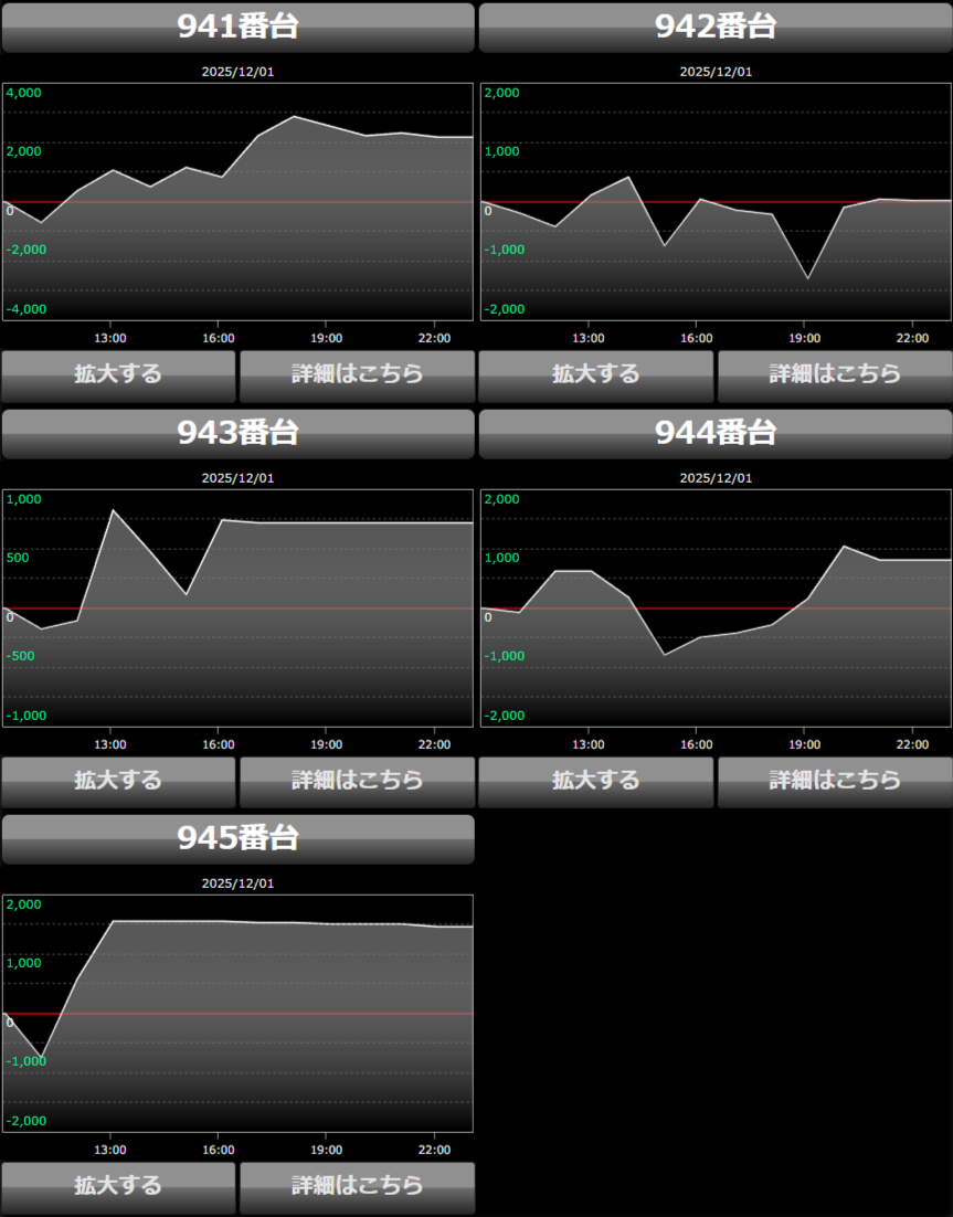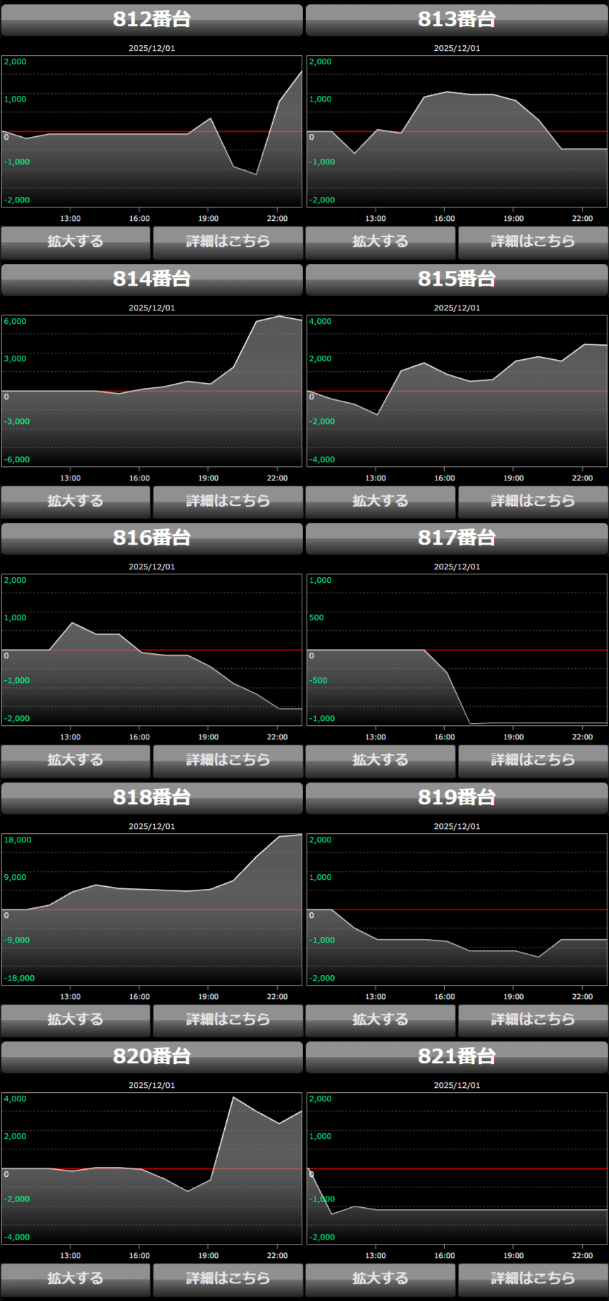 ヴヴヴ2が全体的にG数高め(平均6897G 勝率12/20台)。東リベは1/3位気になる(万枚over2台🎉)。東京喰種は1090~1092番の連番〇。マギレコ・GEは角付近が悪くなさそう。いざ番長は989~990番の連番で万枚overあり🎉ほかドラハナ・モンキーⅤ・L北斗など。L炎炎・かぐや様・チバリヨ2にも万枚over1台あり🎉ジャグラーは126台中23台(18.3%)が推定4以上。マイⅤの269~271番〇。
