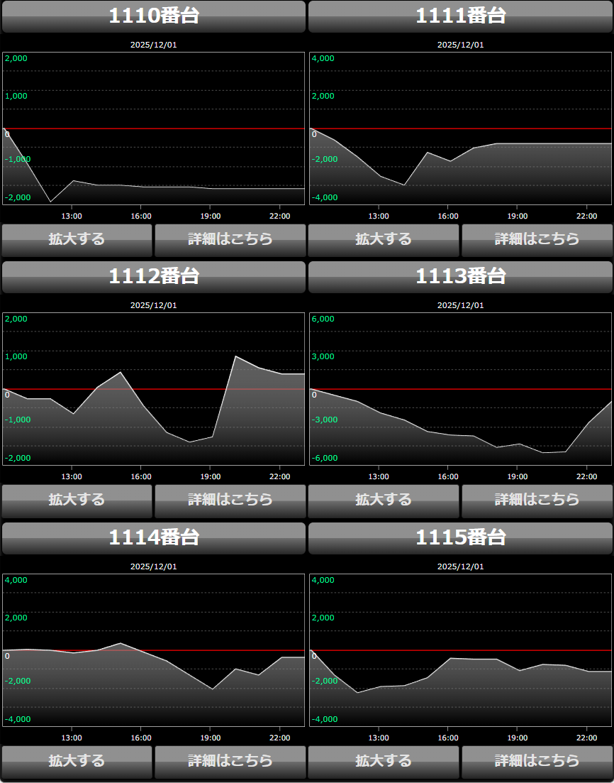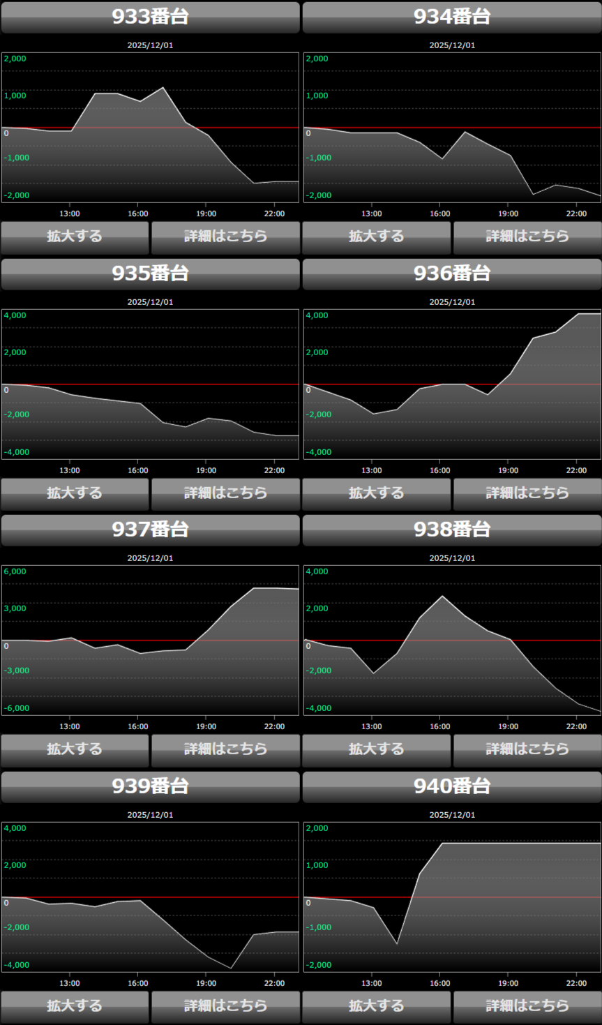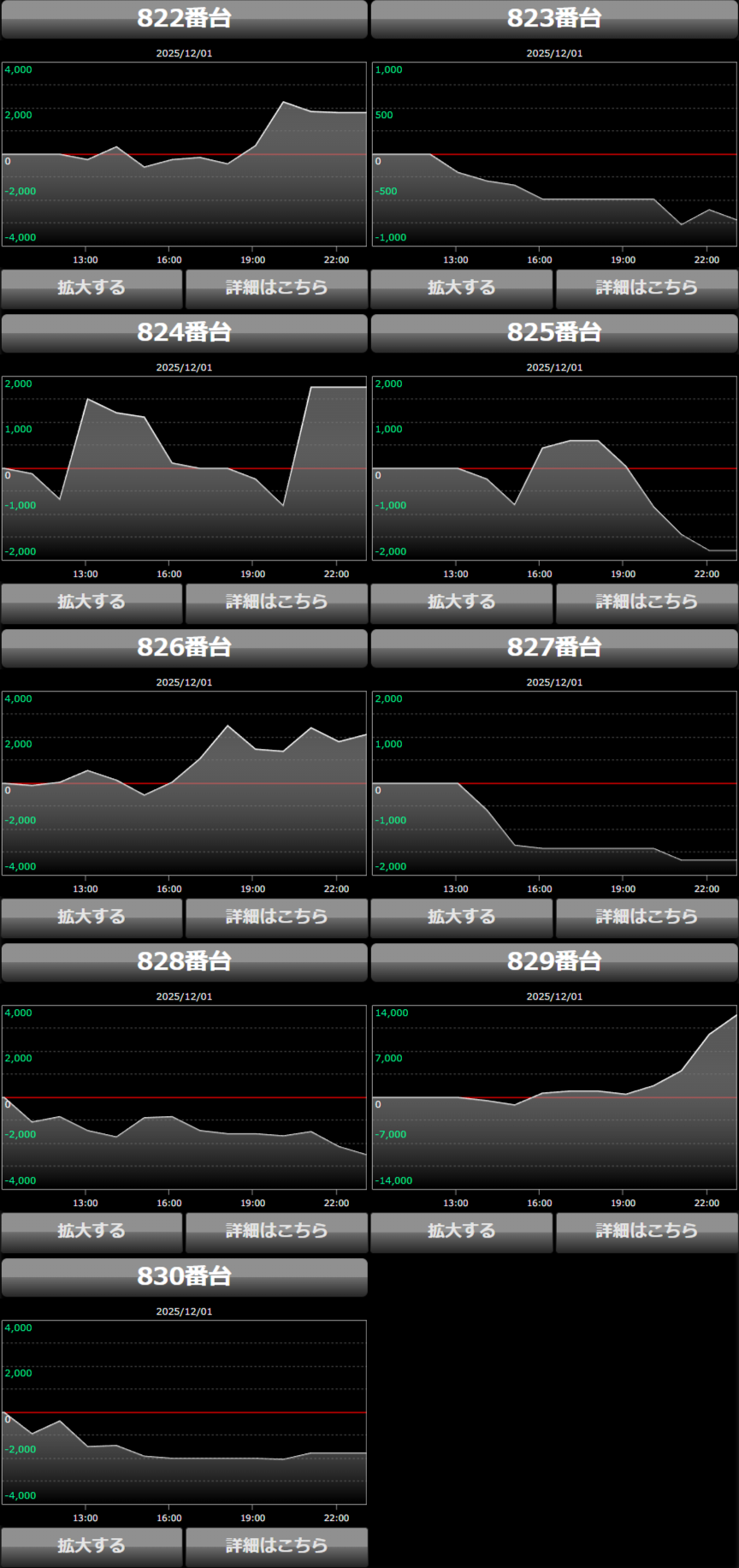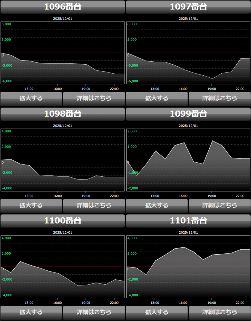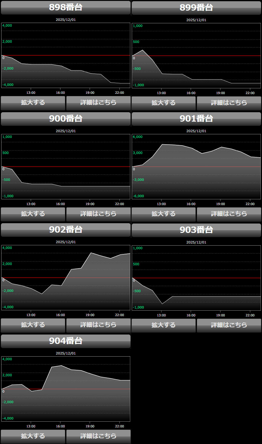 ヴヴヴ2が全体的にG数高め(平均6897G 勝率12/20台)。東リベは1/3位気になる(万枚over2台🎉)。東京喰種は1090~1092番の連番〇。マギレコ・GEは角付近が悪くなさそう。いざ番長は989~990番の連番で万枚overあり🎉ほかドラハナ・モンキーⅤ・L北斗など。L炎炎・かぐや様・チバリヨ2にも万枚over1台あり🎉ジャグラーは126台中23台(18.3%)が推定4以上。マイⅤの269~271番〇。