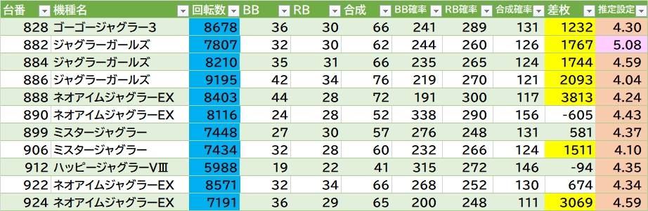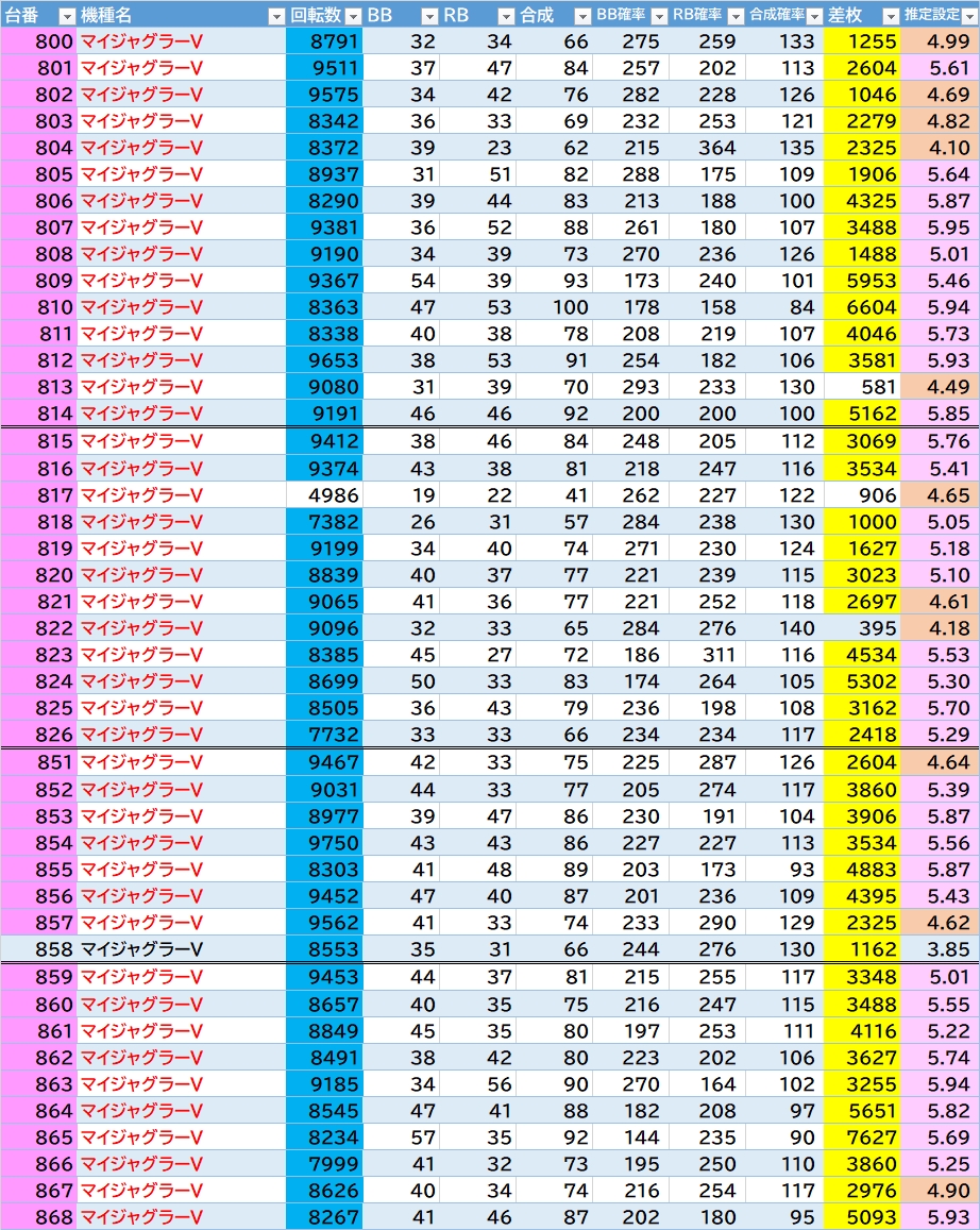 | スマスロ北斗の拳 | 547 | 6,087 | -94 |