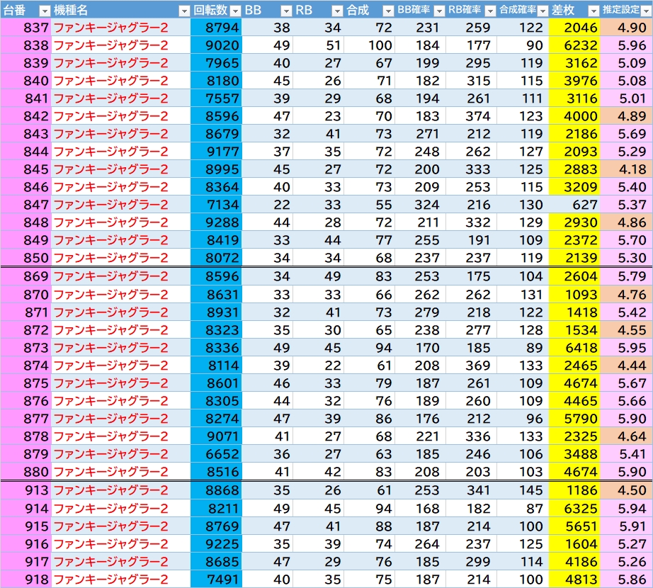 | スマスロ北斗の拳 | 541 | 6,401 | 7,348 |