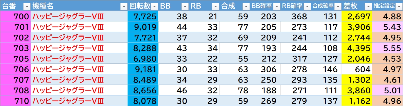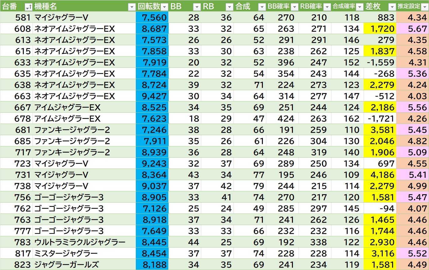 | スマスロ北斗の拳 | 1036 | 6,381 | -47 |
