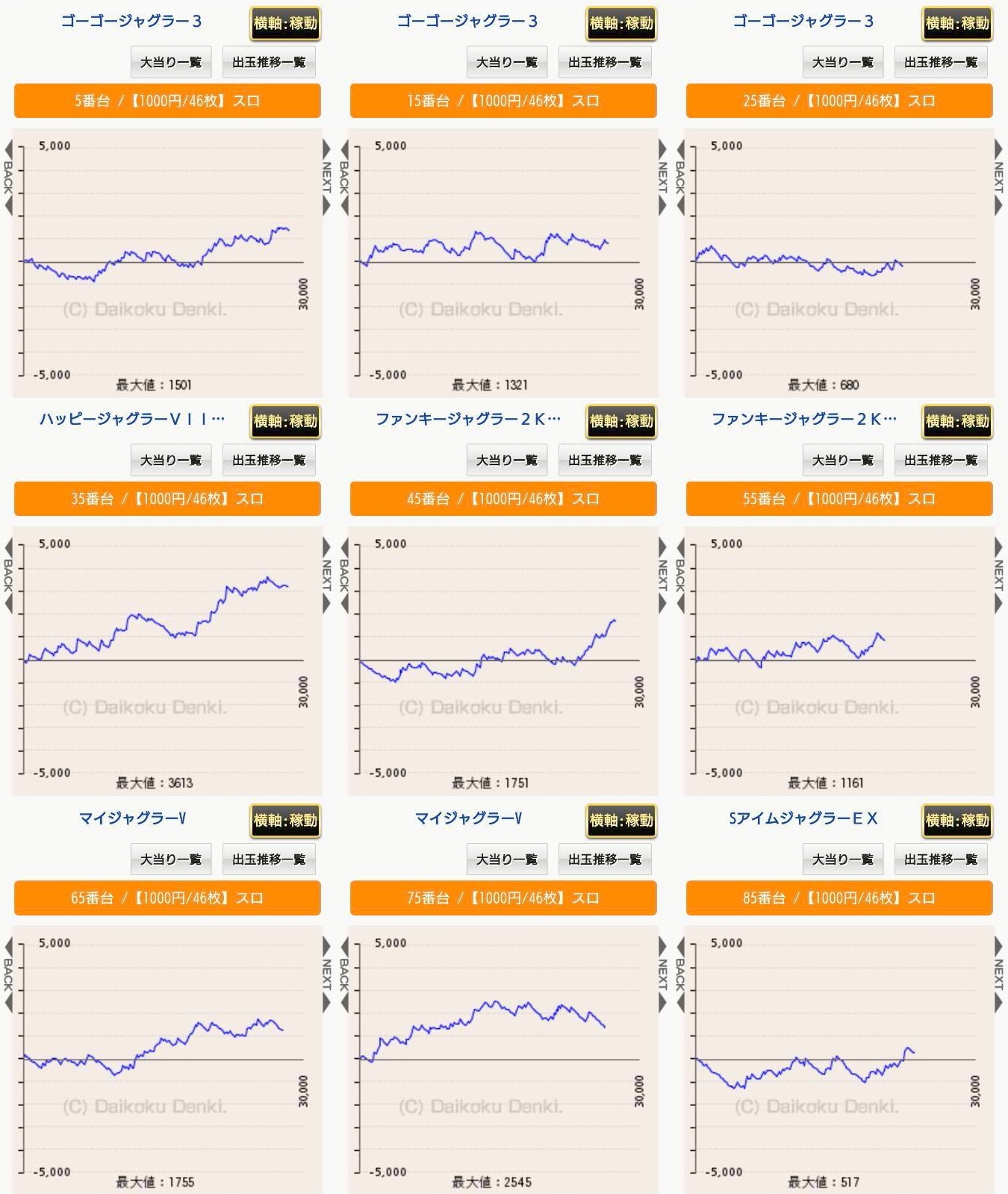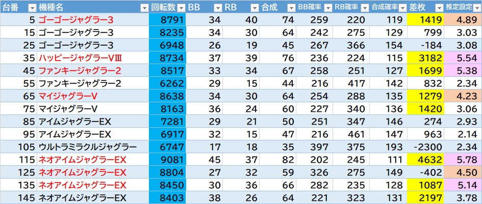 | ゴーゴージャグラー3 | 16 | 6,590 | -760 |