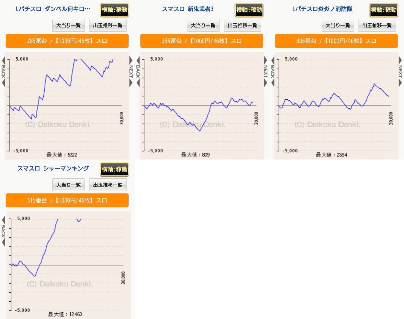 | 沖ドキ!GOLD | 155 | 5,454 | -2,350 |
