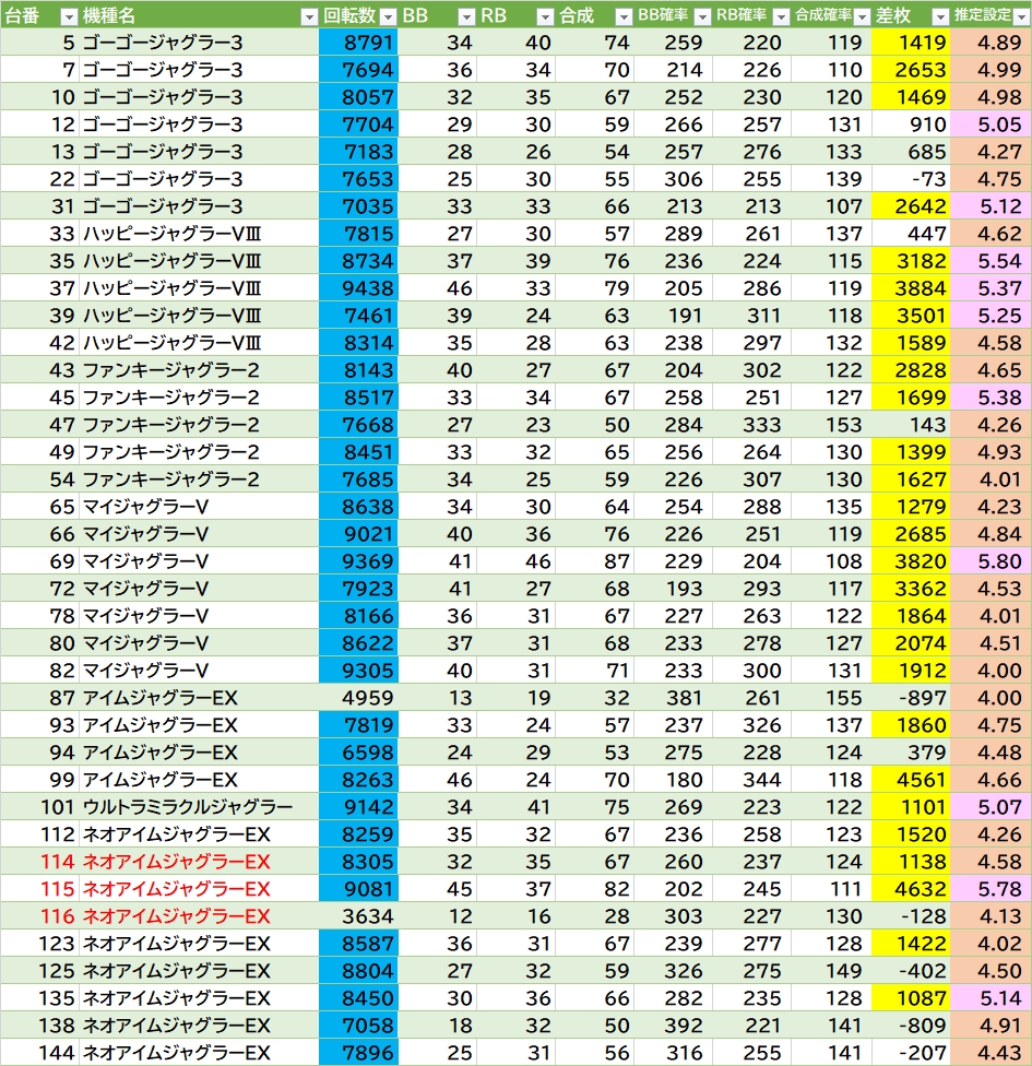 | ネオアイムジャグラーEX | 115 | 9,081 | 4,632 |
