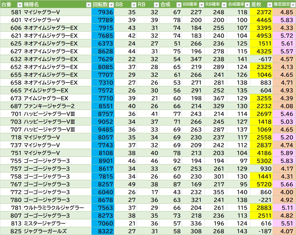 | スマスロ北斗の拳 | 1033 | 6,641 | 2,651 |