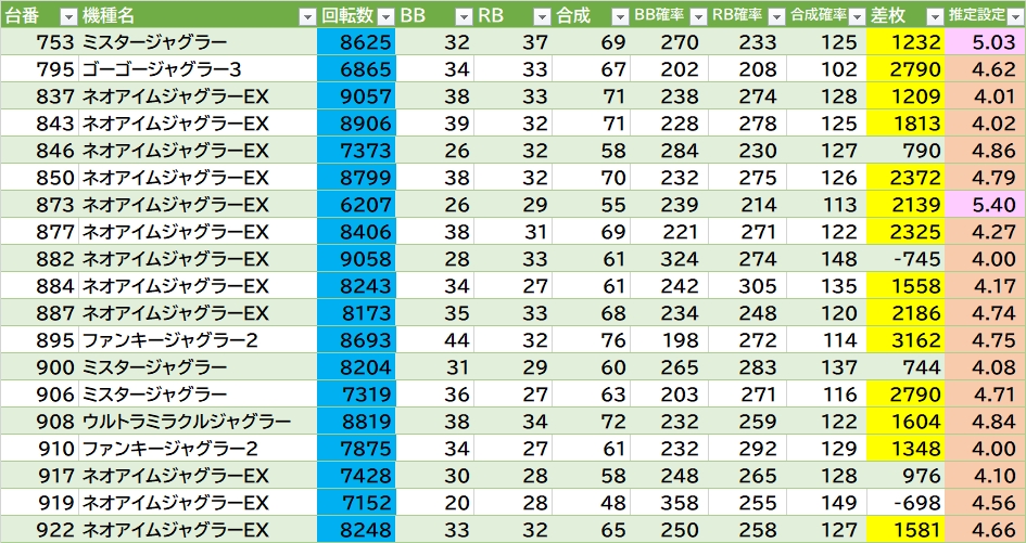 | スマスロ北斗の拳 | 543 | 4,907 | 1,395 |