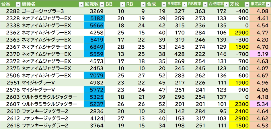 | スマスロ北斗の拳 | 2773 | 5,241 | 4,900 |