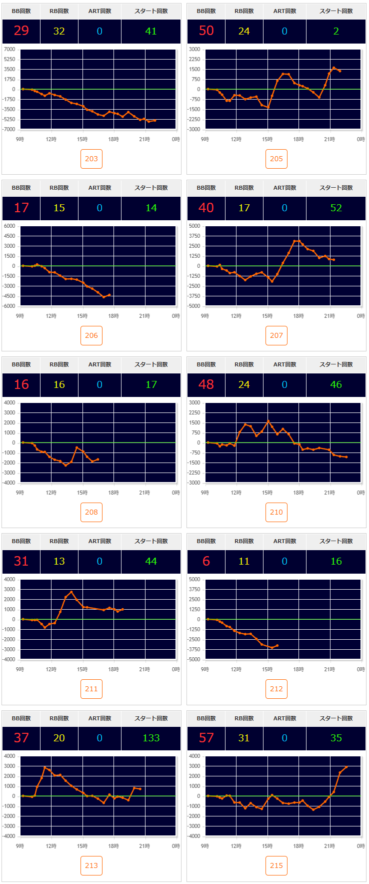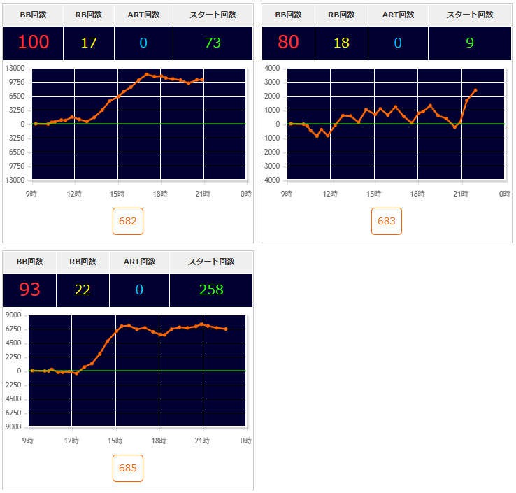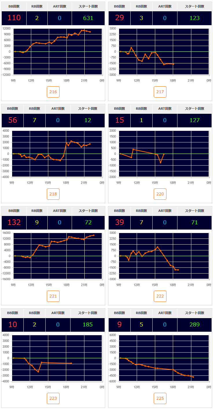 | 機種名 | 台番 | G数 | 差枚 |