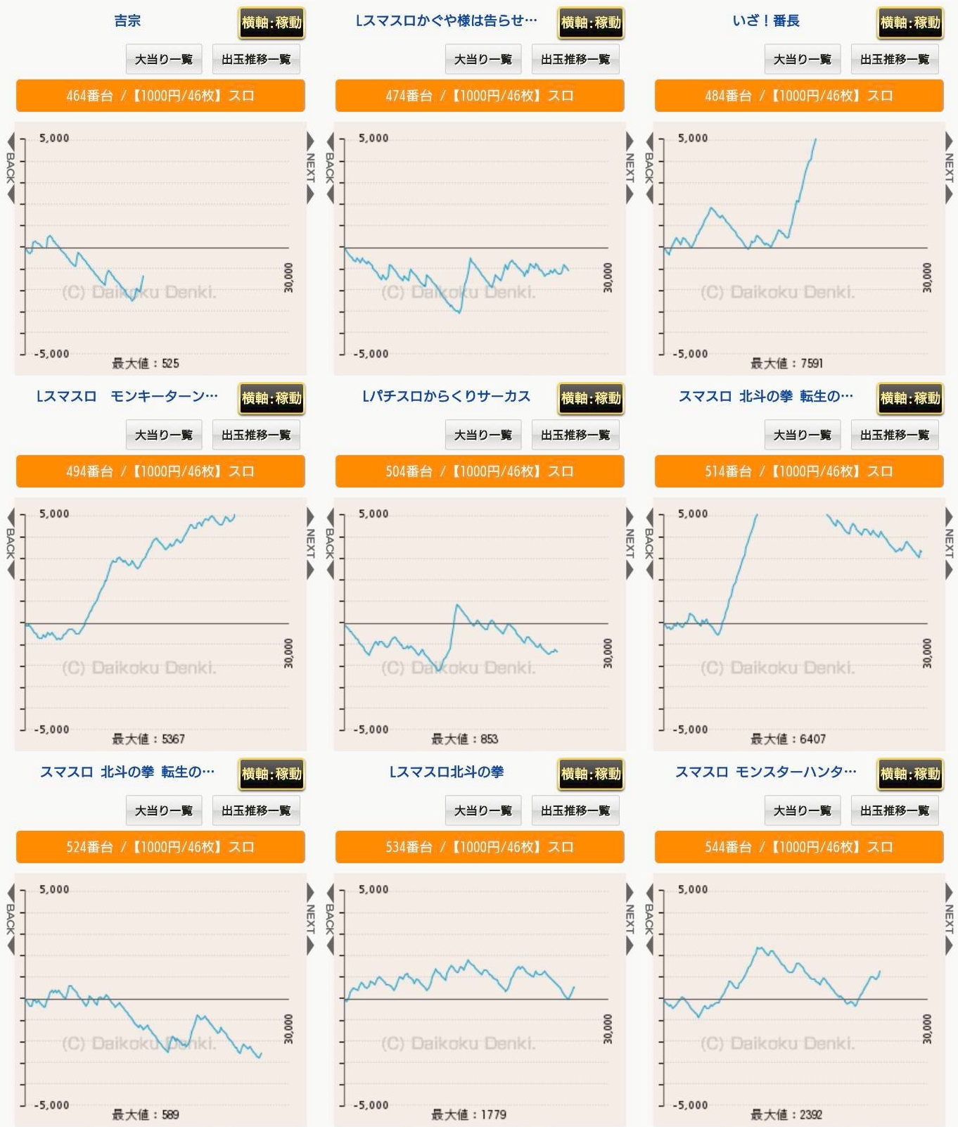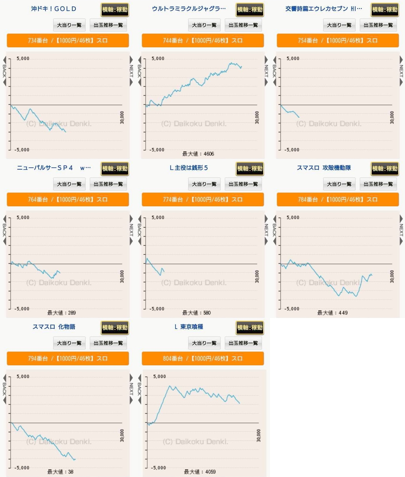 機種名 台番 G数 差枚