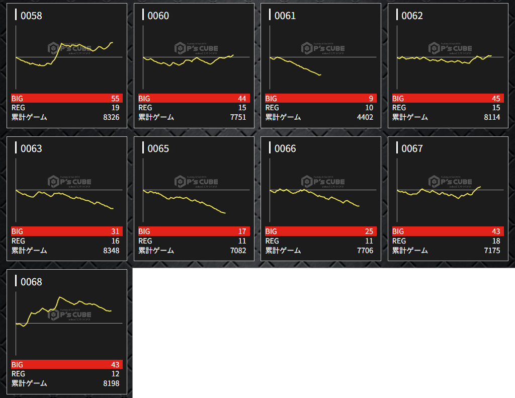| 機種名 | 台番 | G数 | 差枚 |