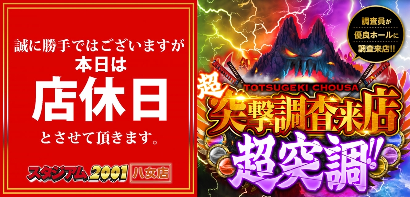 スタジアム2001八女【新台入替&超突撃調査来店(紫)】