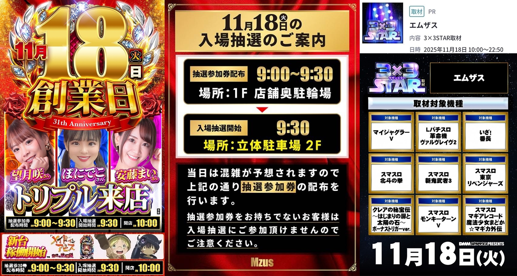 エムザス笹丘【創業日&新台開放&3×3STAR取材&望月咲・安藤まい・ぽにでこ来店】