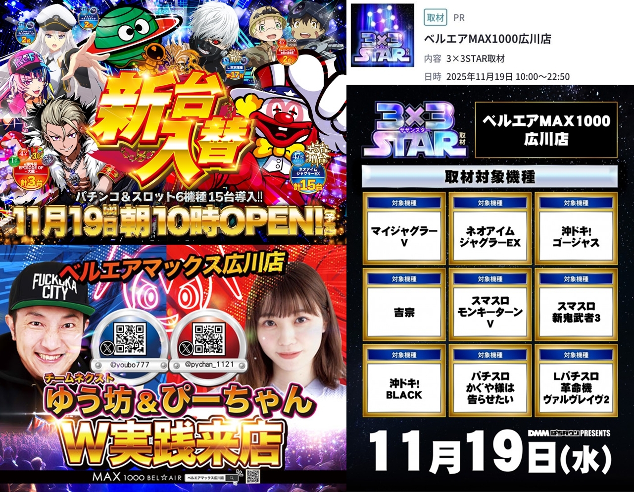 広川【新台入替&3×3STAR取材&ぴーちゃん・ゆう坊来店】