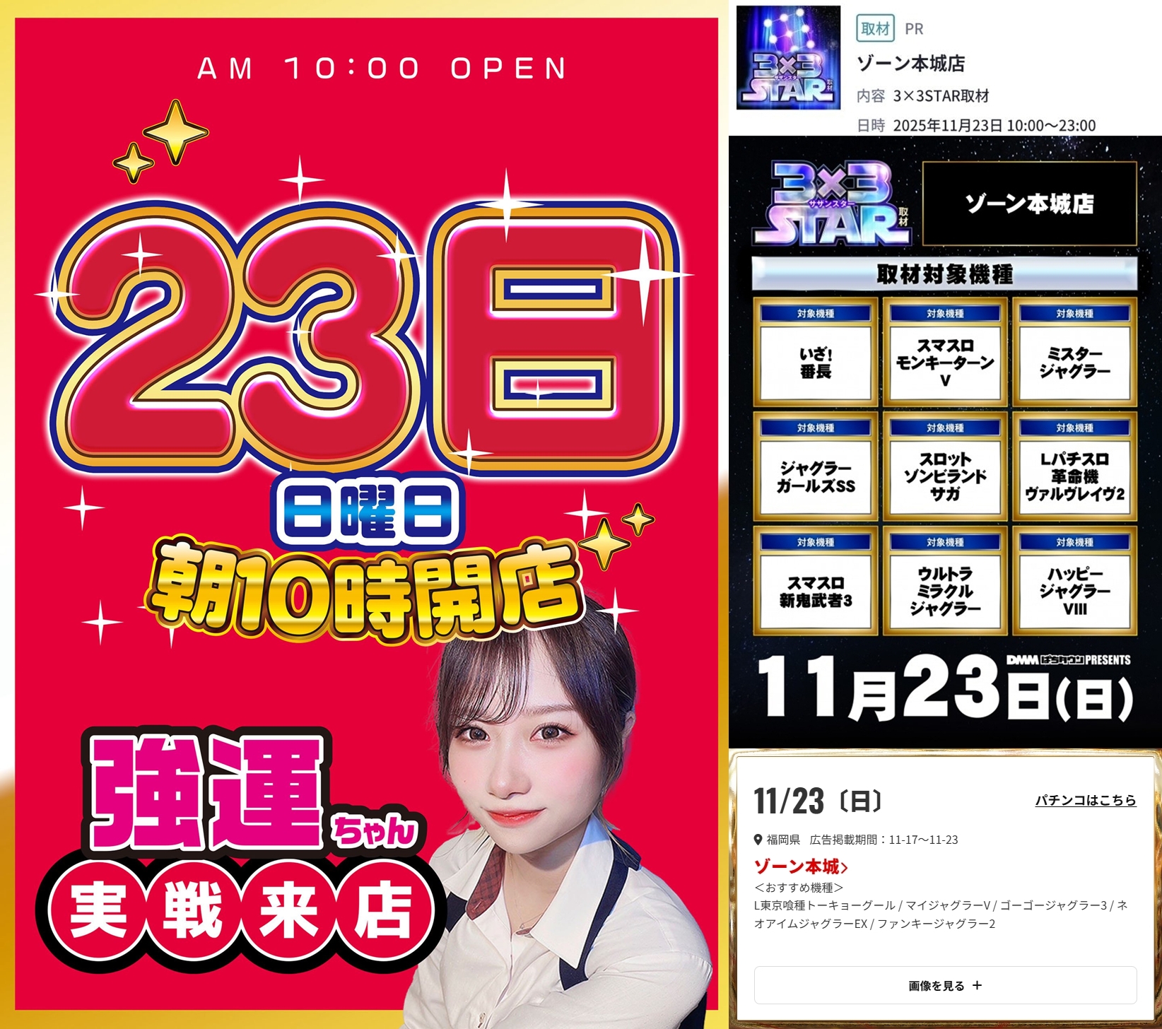 - 2.23 ゾーン本城【3×3STAR取材&オススメホールマン&強運ちゃん来店】
