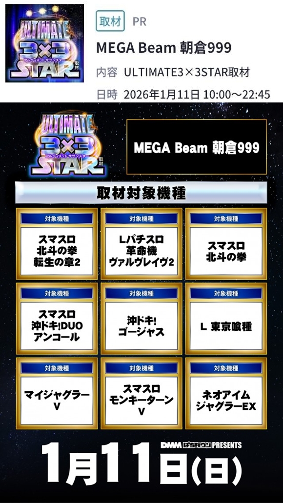 メガビーム朝倉999【ULTIMATE3×3STAR取材】