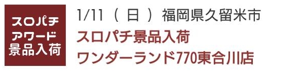 1188大刀洗・小戸本館・770東合川【スロパチアワード景品入荷】
