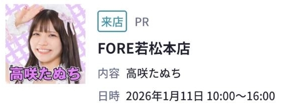 FORE若松本店【高咲たぬち来店】