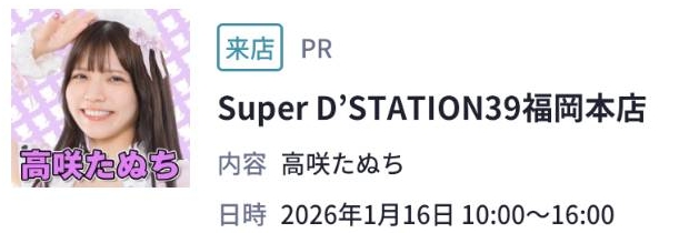 - 2.6 スーパーDステーション39福岡本店【高咲たぬち来店】