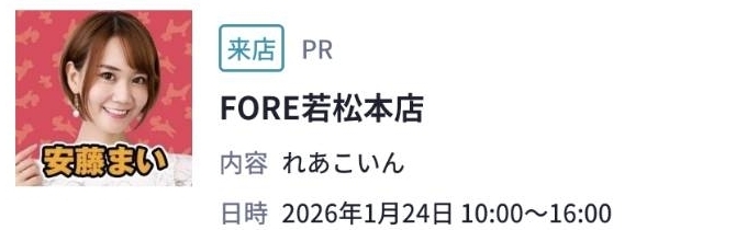 FORE若松本店【安藤まい来店】