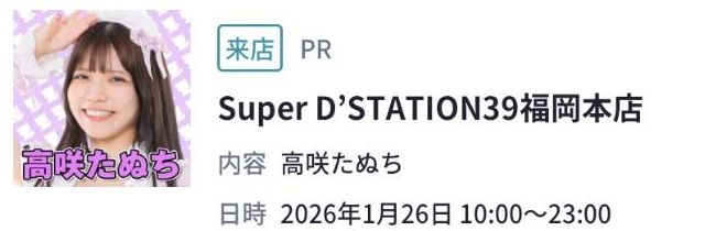 スーパーDステーション39福岡本店【高咲たぬち来店】