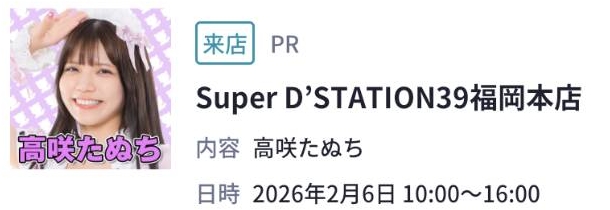 スーパーDステーション39福岡本店【高咲たぬち来店】