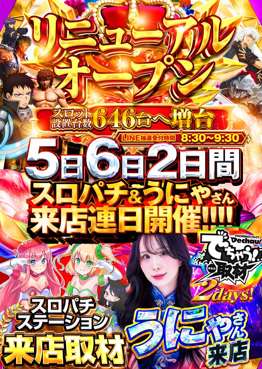 950高須【リニューアル2日目&スロパチ取材(赤)&でちゃう取材(虹)&うにゃ来店】